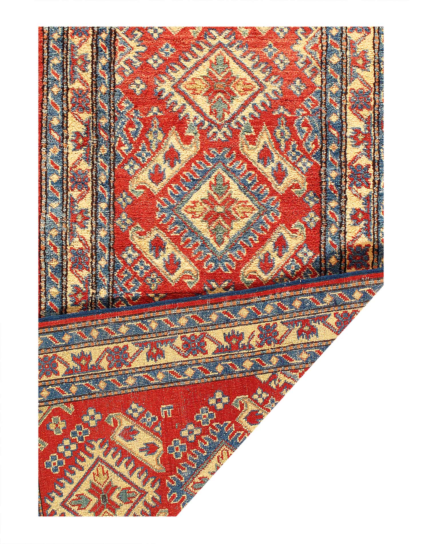 Vegetable Dyed,This rug is handmade from 100-percent premium, hand-spun wool, and employ ancient pot-dying techniques to give them their authentic look.This rug is handmade from 100-percent premium, hand-spun wool, and employ ancient pot-dying techniques to give them their authentic look.Kazak is a modern shape of old Caucasian rugs which strictly adheres to traditional design elements of the Caucasus. It has elements such as the stepped hooked polygons, geometrical medallions and rosettes, presented in more stylized manner and with a new dimension. Natural dyes produce soft luminous shades and abrashes causing a beautiful sheen. Hand spun wool yarn is normally used in the variety of vibrant warm colors. Kazaks rugs in our collection are all fine quality pieces from Pakistan made with Ghazni handspun wool and natural dyes.