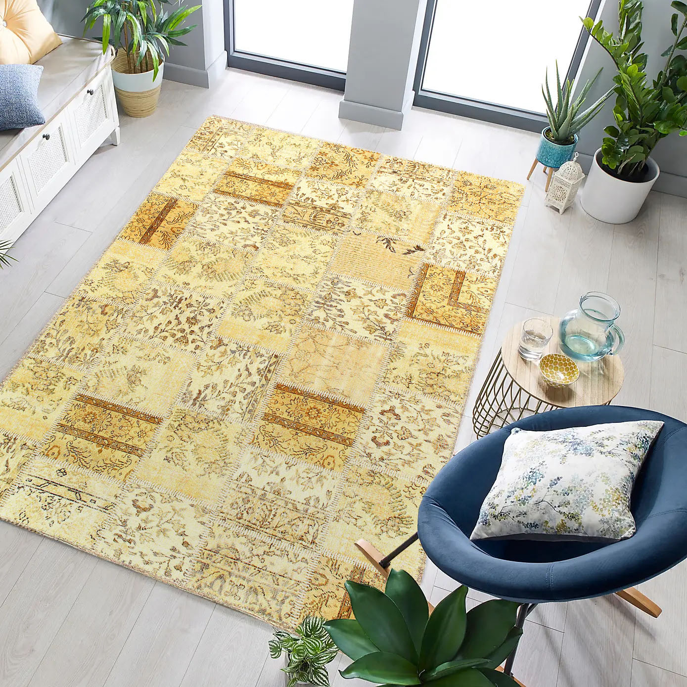 The vintage patchwork design will give your home a sophisticated style. Contemporary design. 100% Lamb's Wool. With a striking design and smooth coloring, this flawless piece will radiate both opulence and classic charm from room to room within any home.