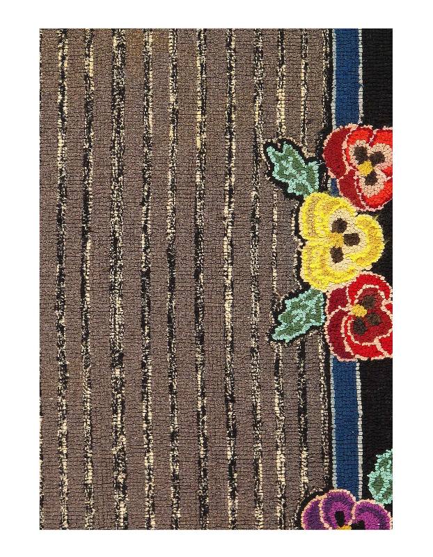 beautiful and Early Antique American Hooked Rug, Country of Origin: American, Circa Date: Early 20th Century – Ingenious in its style, color and composition, this spectacular antique American hooked rug features a splendid allover pattern that creates an illusion of depth and texture. The beautiful basket-weave pattern with its poly-chromatic stripes follows a strict under-over form that sets it apart from the monochromatic and subtly variegated squares featured in the background. Like a patchwork quilt that incorporates innumerable colors and prints, this stunning antique hooked rug is a joy to behold. The varied earth-tone hues are juxtaposed beautifully against the vivid pink, vermillion and turquoise accent colors that are set between the basket-weave stripes. This outstanding antique rug, an American hooked carpet illustrates the amazing versatility of a simple geometric repeating pattern, which is executed in a way that is full of color, texture and visual appeal.