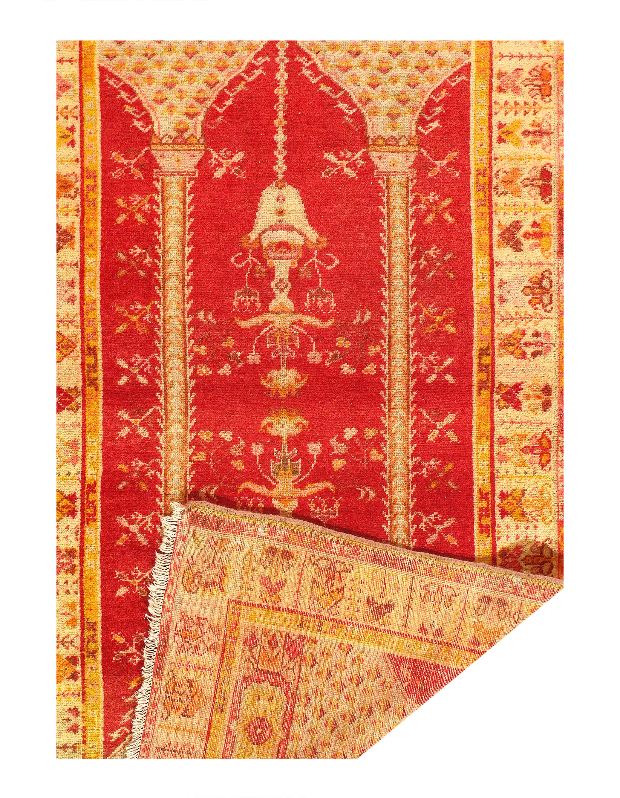 For people who love color, it simply does not get much better than this red background antique Turkish Oushak rug. Its soft texture and happy colors give it a remarkable luxurious feel that will be sure to attract much attentions from whoever sees it. Without a doubt, this is the type of antique rug that is sure to become a cherished family heirloom for many future generations.