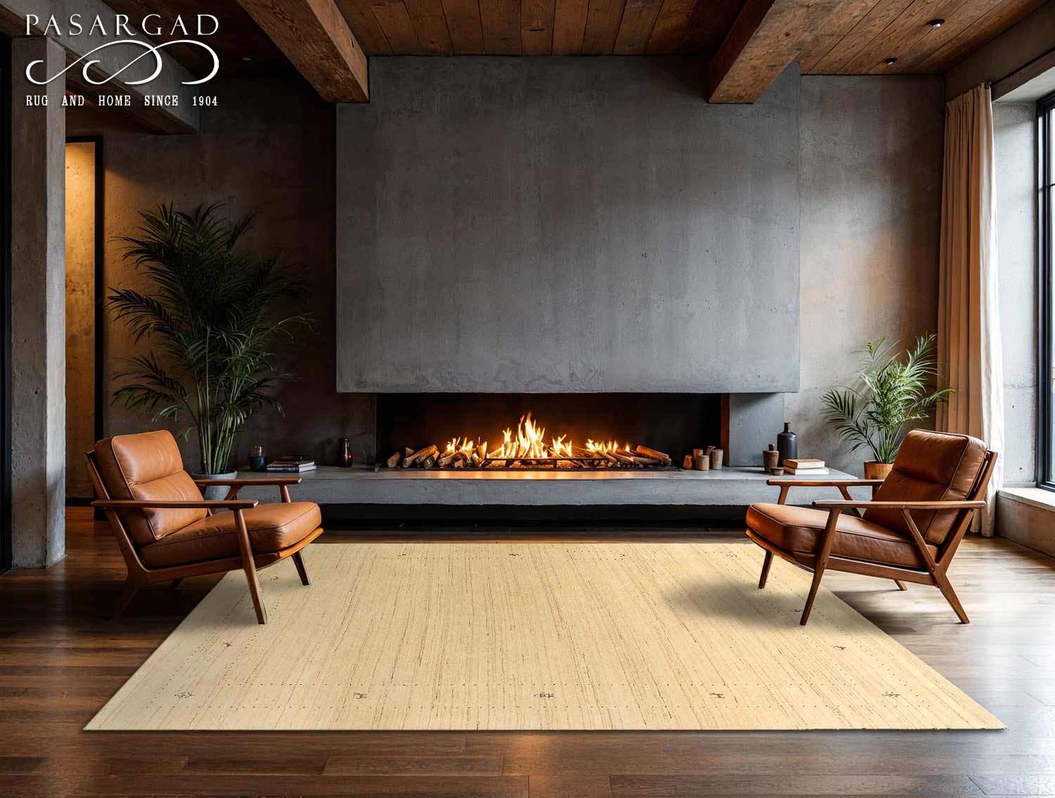 Gabbeh Rugs feature hand-spun wool in both the pile and foundation. These rugs are characterized by their abstract designs that relies upon open fields of color and a playfulness with geometric figures used to depict . Gabbeh Rugs are popular in a contemporary or modern setting and are extremely durable, usually small to medium size
