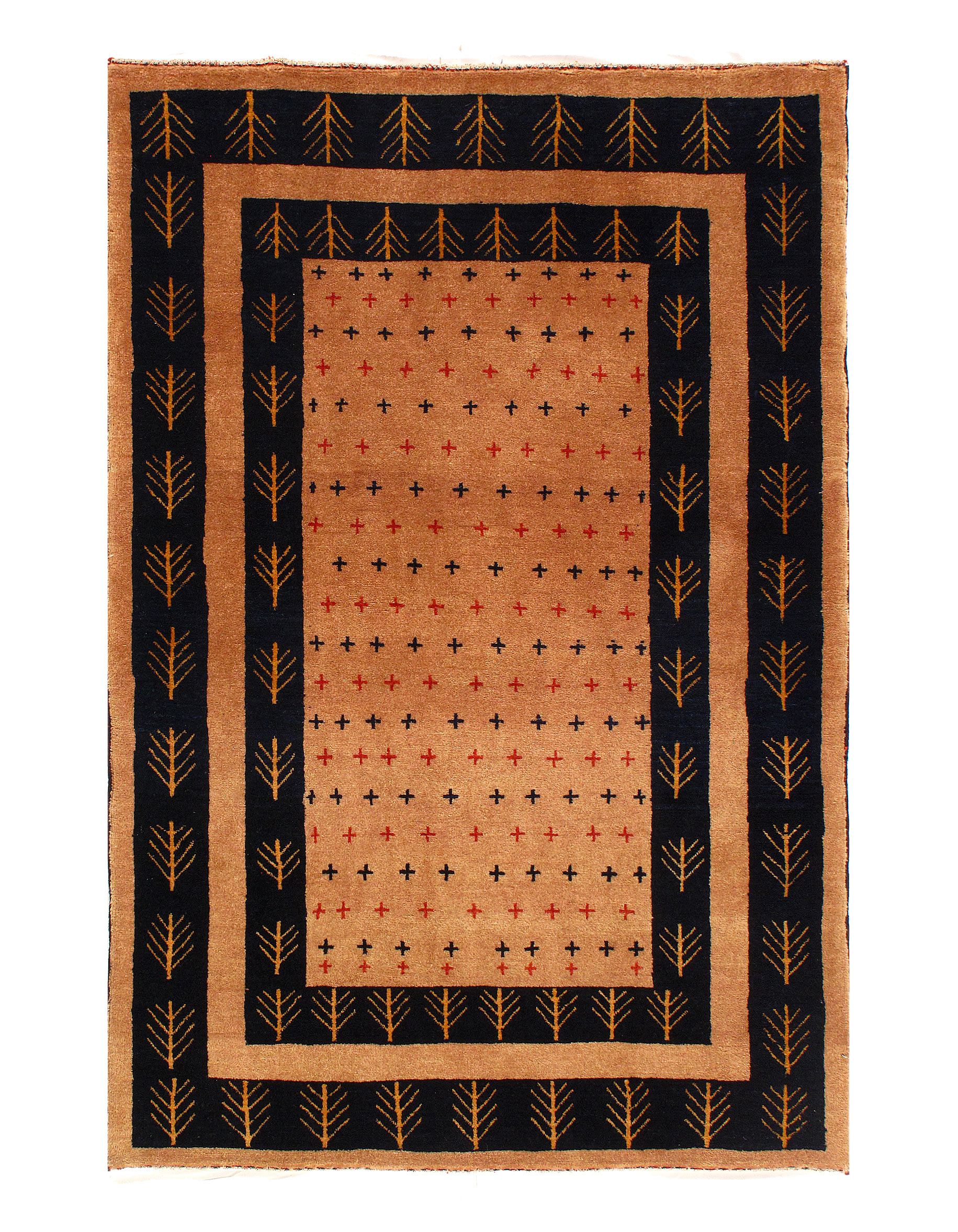 The word “Gabbeh” literally translates to “in the rough,” and it is an accurate description of this style of Persian rug. Gabbeh carpets are woven on makeshift ground looms constructed both of materials that are kept and hauled for long distances by the nomadic tribel, and also of materials that are found at each site where the tribe sets up camp. Due to the fact that part of the loom must be found at each site, a wide variety is introduced. Thus, these rugs are usually somewhat irregular in shape. But, for what they lack in perfectly uniform shape they more than make up for in character, durability and uniqueness.