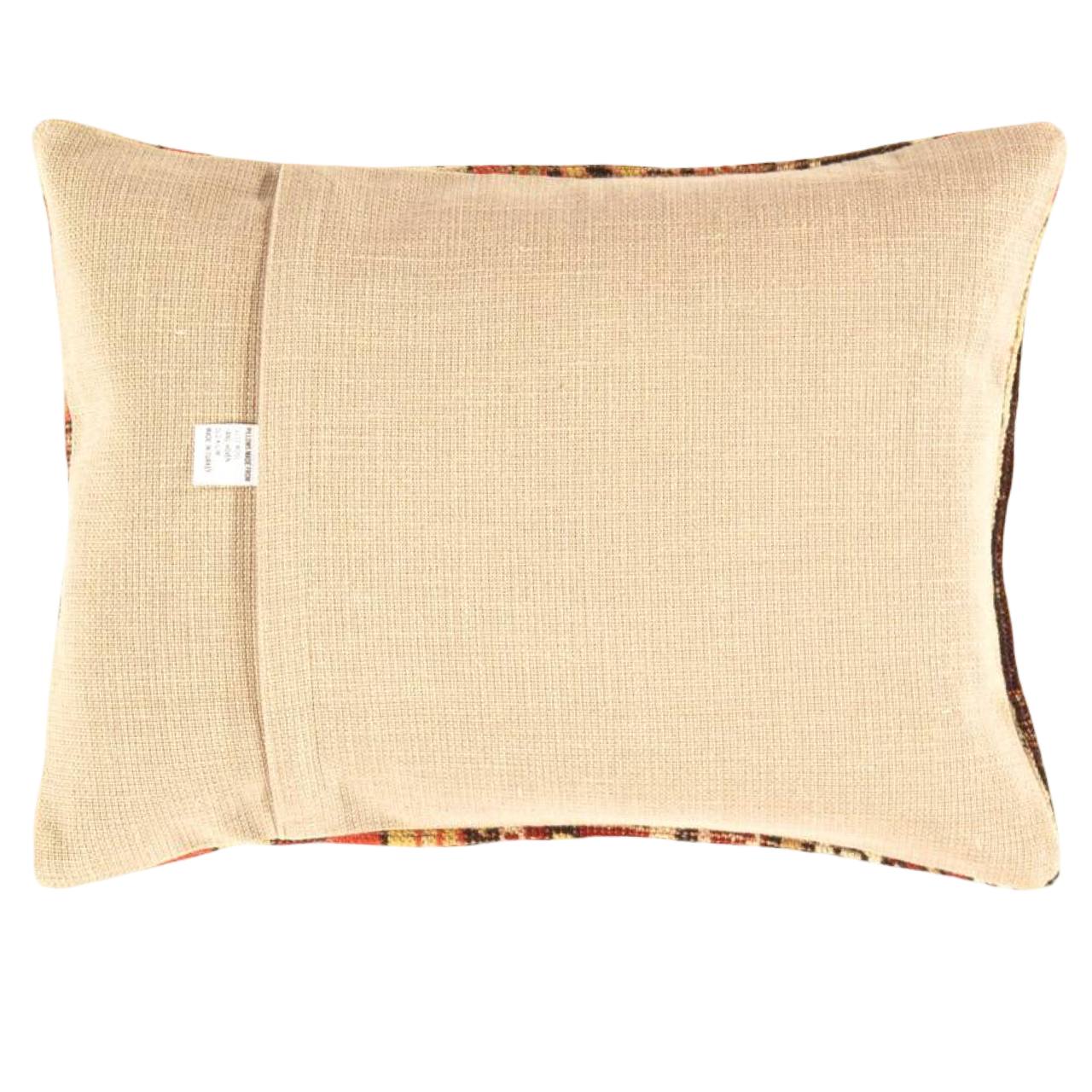 Offered is Vintage handwoven Turkish kilim pillow. This is 100% wool. Back 100% cotton. Beautiful colors and well made. This pillow features a hidden zipper closure with neutral fabric backing