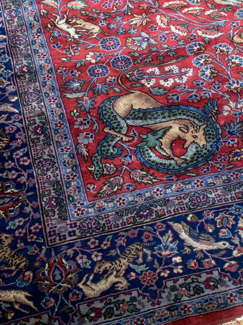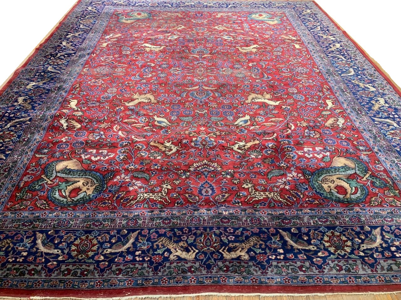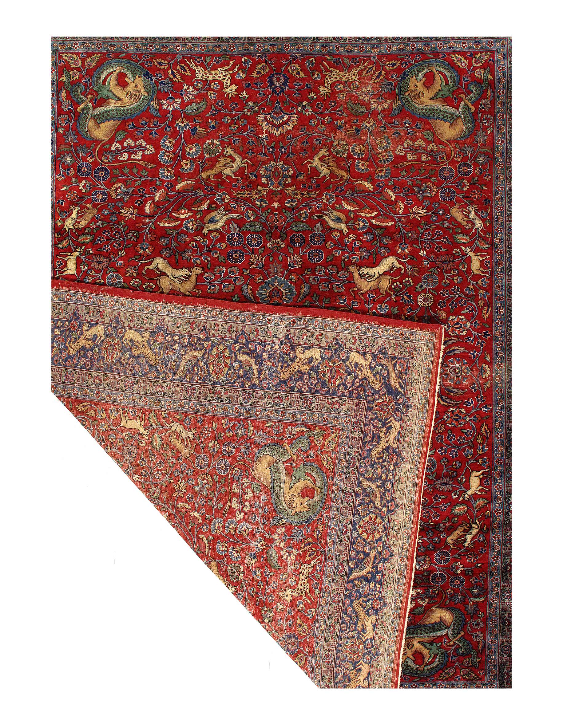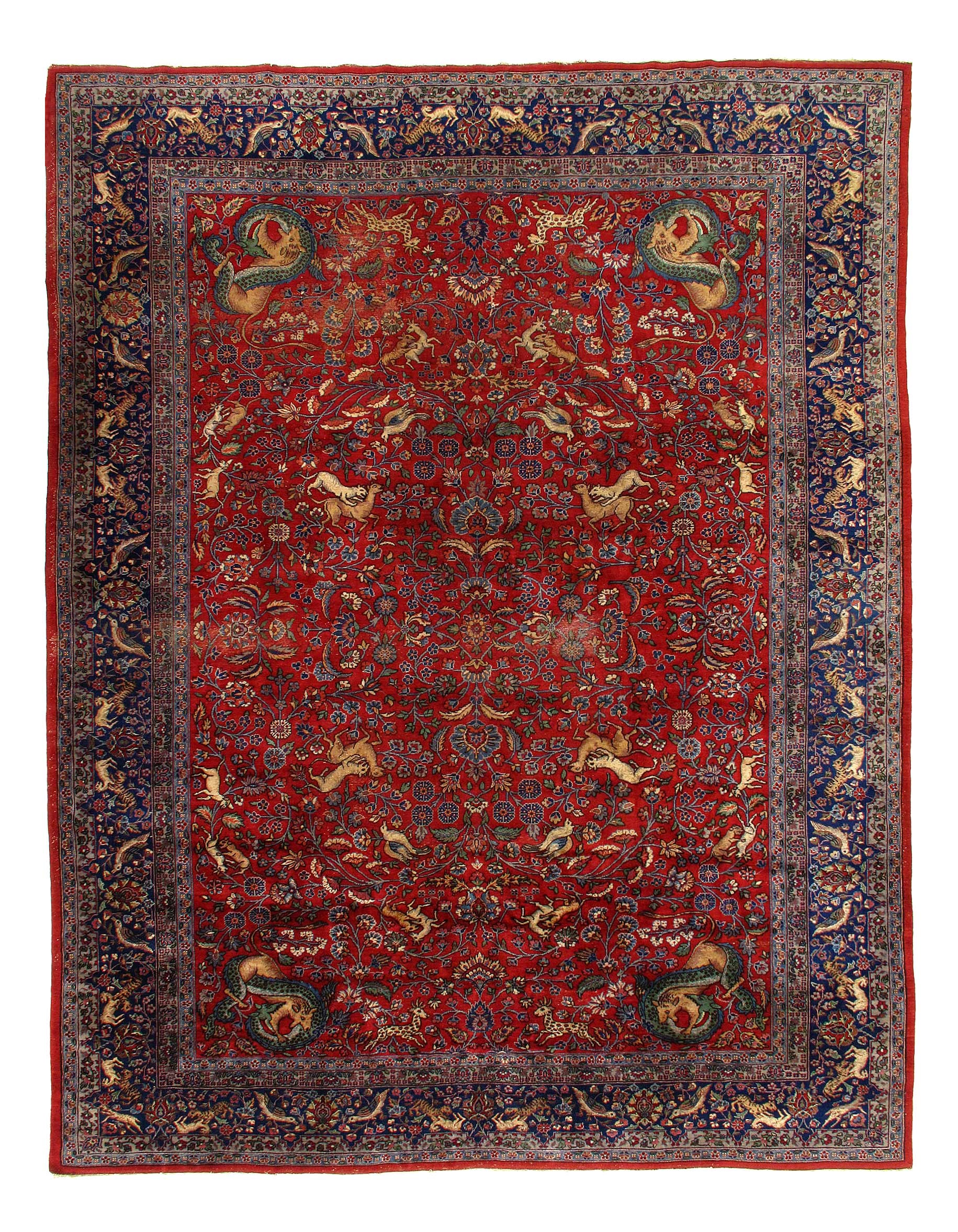 This luxurious Tabriz revival is nothing shy of elegance and artistry. A traditional creation encompasses the beauty and sophistication of traditional Persian designs in red and bright blue. This rug is suitable for both traditional and modern interiors.