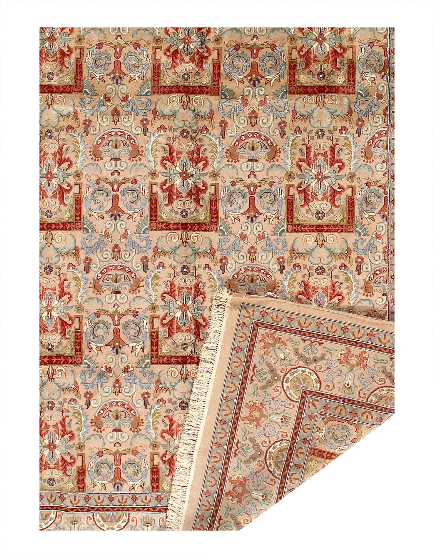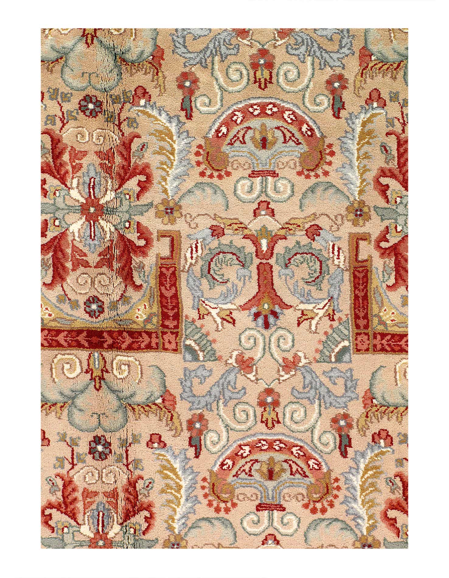 Augra rugs are distinguished by their excellent weave, they have the most diverse display of designs which often reflect scenes of falconry, and ferocious lions. Some of the most well know Augra rugs were inspired by hand painted covers of Ancient books. The dominant colors for these rugs tend to be, cream, red, navy blue, and many more. Their material is often woven with wool or silk. Augra rugs are not only one of the finest groups of Indian rugs but also the most decorative as well.