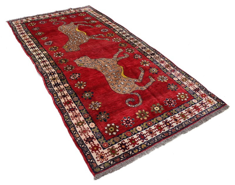 One of A Kind Antique Authentic Qashqai cheetah Pictorial Tribal Gabbeh Rug handmade 100%wool. All hand spun wool