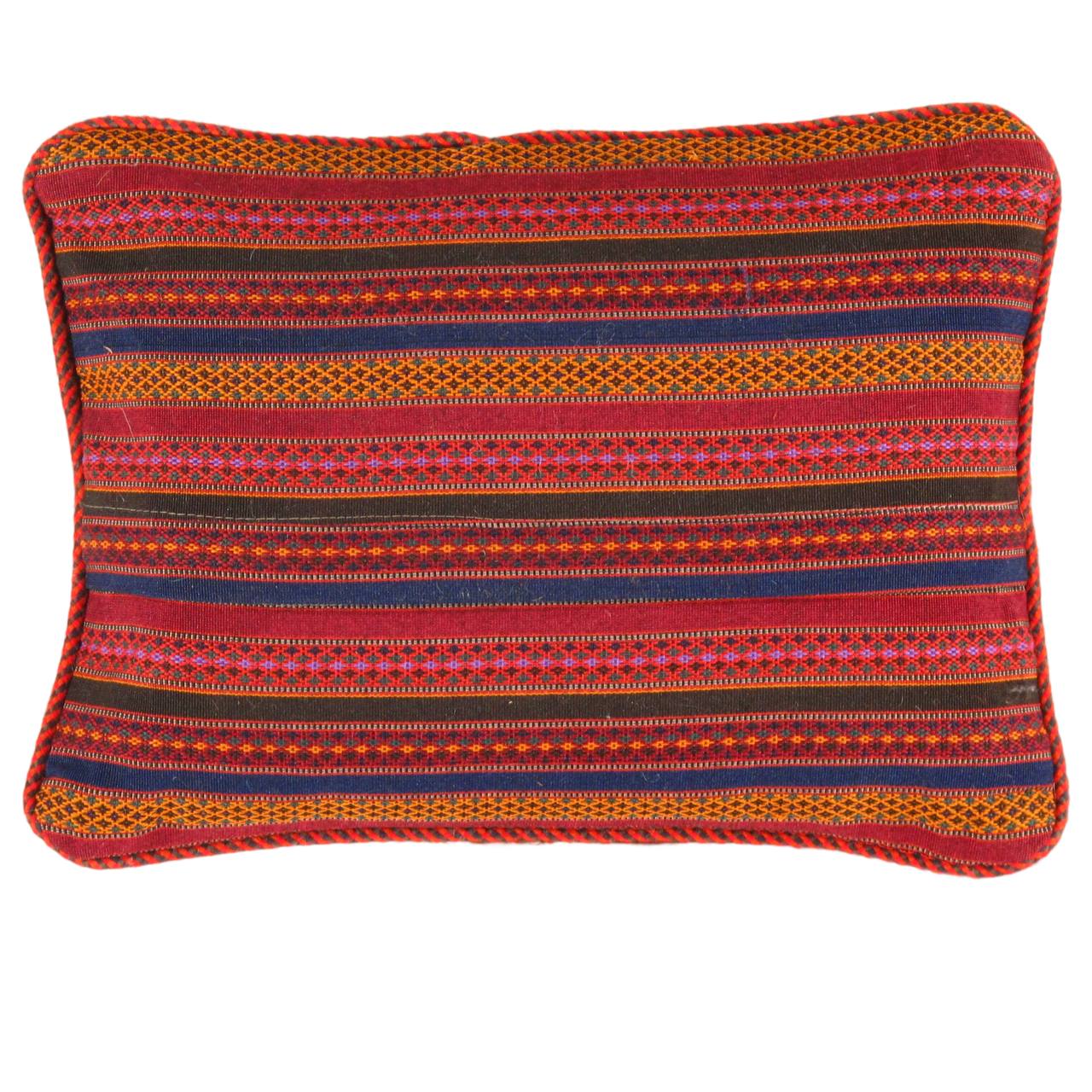 The word “Gabbeh” literally translates to “in the rough,” and it is an accurate description of this style rug. Gabbeh carpets are woven on makeshift ground looms constructed both of materials that are kept and hauled for long distances by the nomadic tribel, and also of materials that are found at each site where the tribe sets up camp. Due to the fact that part of the loom must be found at each site, a wide variety is introduced. Thus, these rugs are usually somewhat irregular in shape. But, for what they lack in perfectly uniform shape they more than make up for in character, durability and uniqueness.This Gabbeh pillow is made of high-quality LAMBS WOOL The piece was crafted with good workmanship.