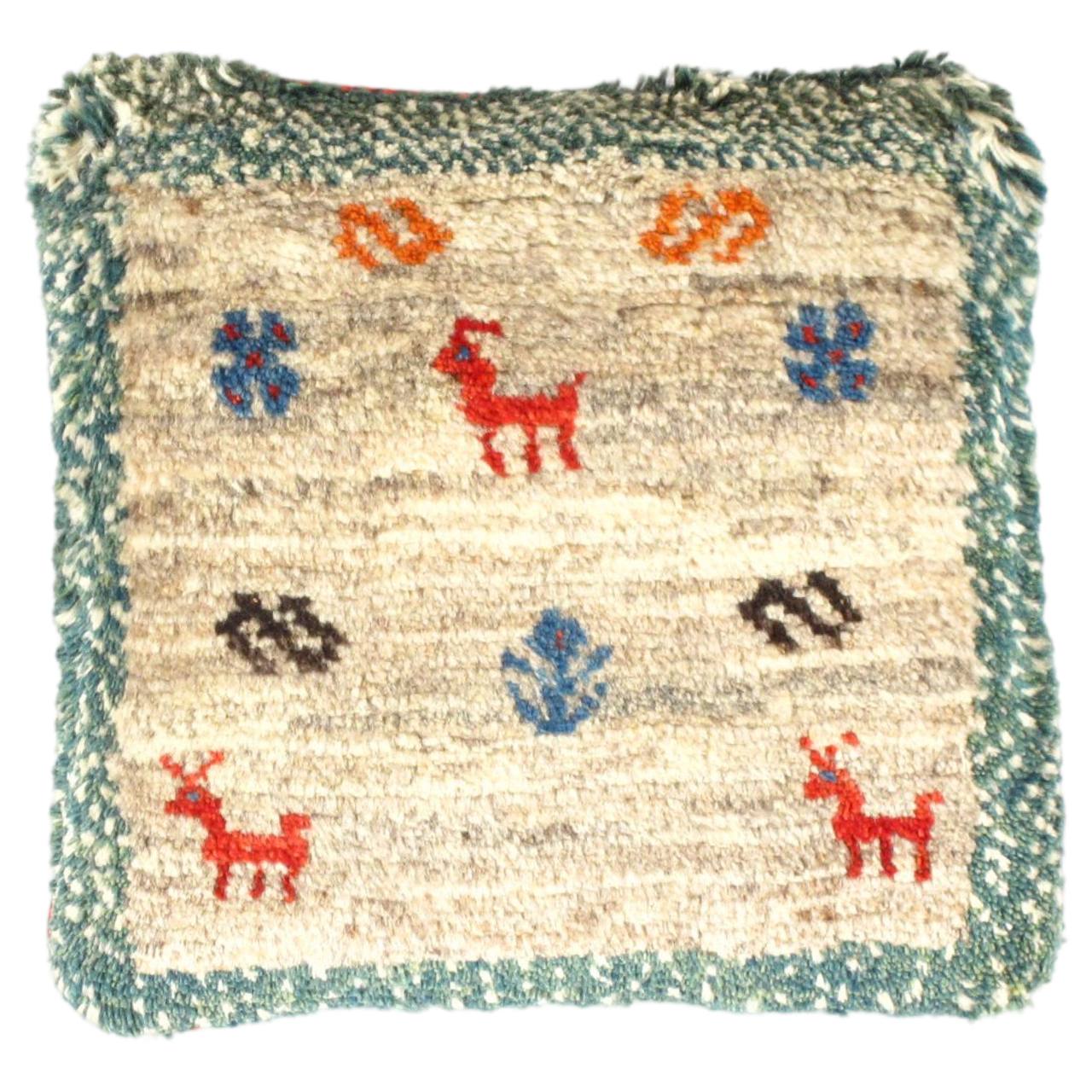 This Gabbeh pillow is made of high-quality LAMBS WOOL The piece was crafted with good workmanship.