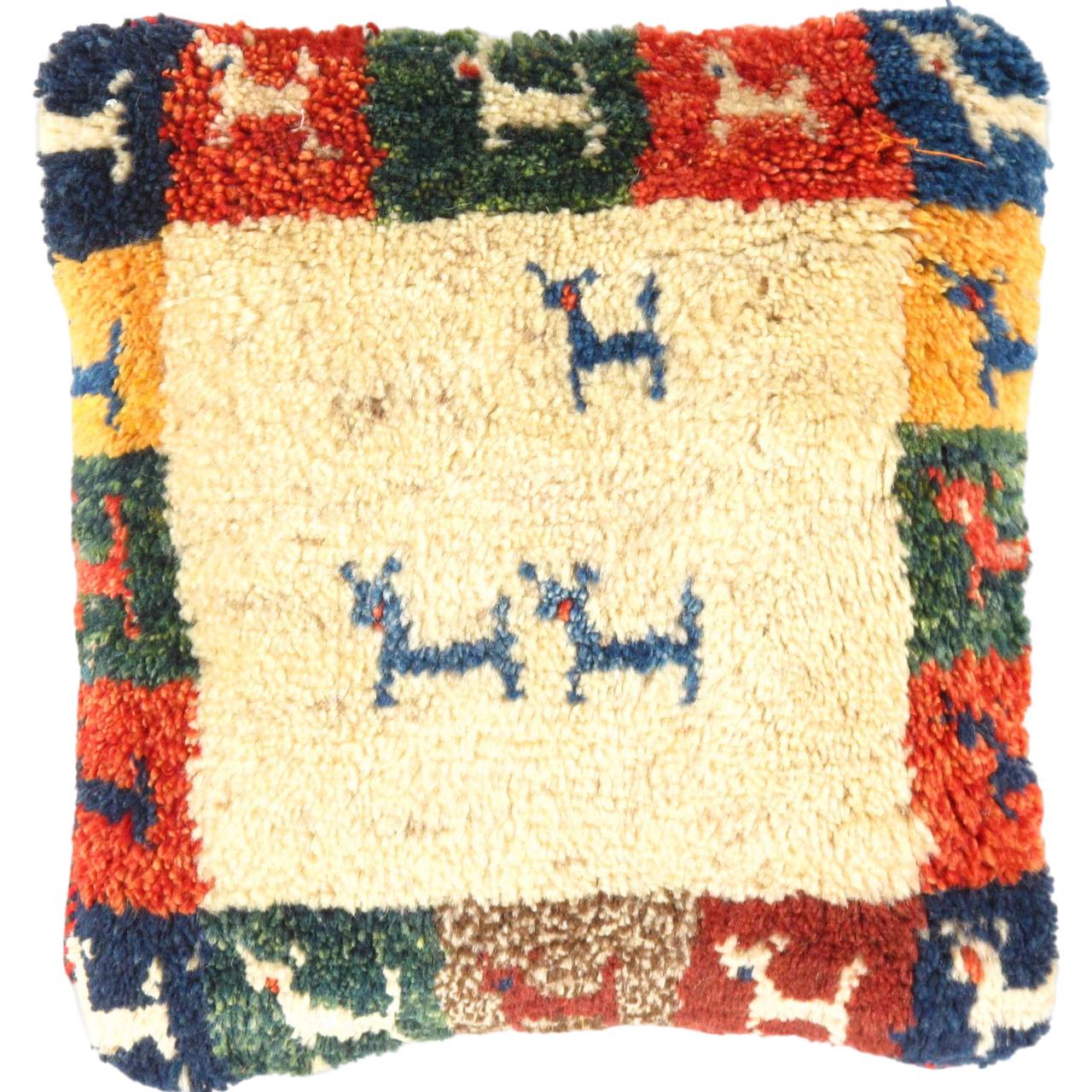 This Gabbeh pillow is made of high-quality LAMBS WOOL The piece was crafted with good workmanship.