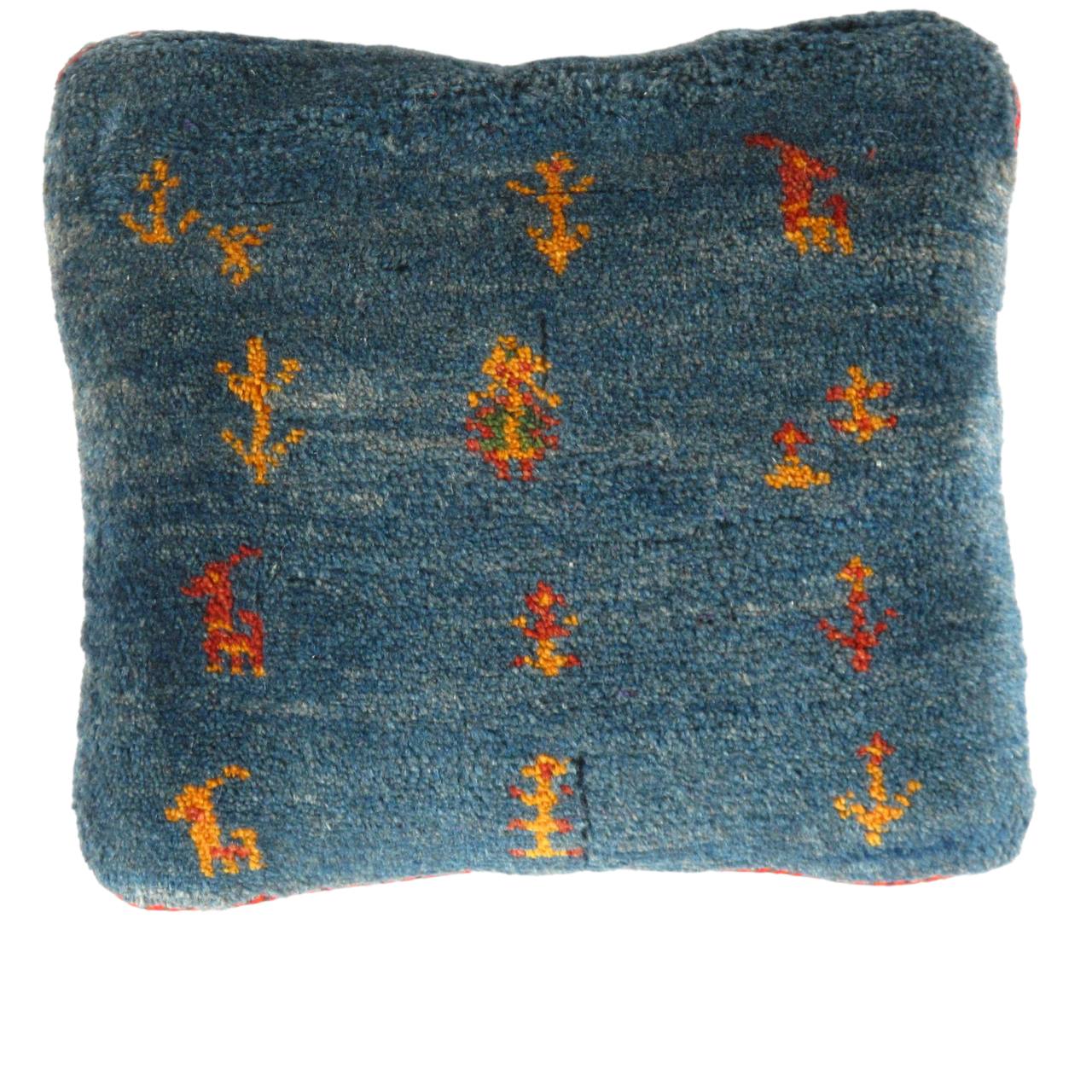 The word “Gabbeh” literally translates to “in the rough,” and it is an accurate description of this style of Persian rug. Gabbeh carpets are woven on makeshift ground looms constructed both of materials that are kept and hauled for long distances by the nomadic tribel, and also of materials that are found at each site where the tribe sets up camp. Due to the fact that part of the loom must be found at each site, a wide variety is introduced. Thus, these rugs are usually somewhat irregular in shape. But, for what they lack in perfectly uniform shape they more than make up for in character, durability and uniqueness.This Gabbeh pillow is made of high-quality LAMBS WOOL The piece was crafted with good workmanship
