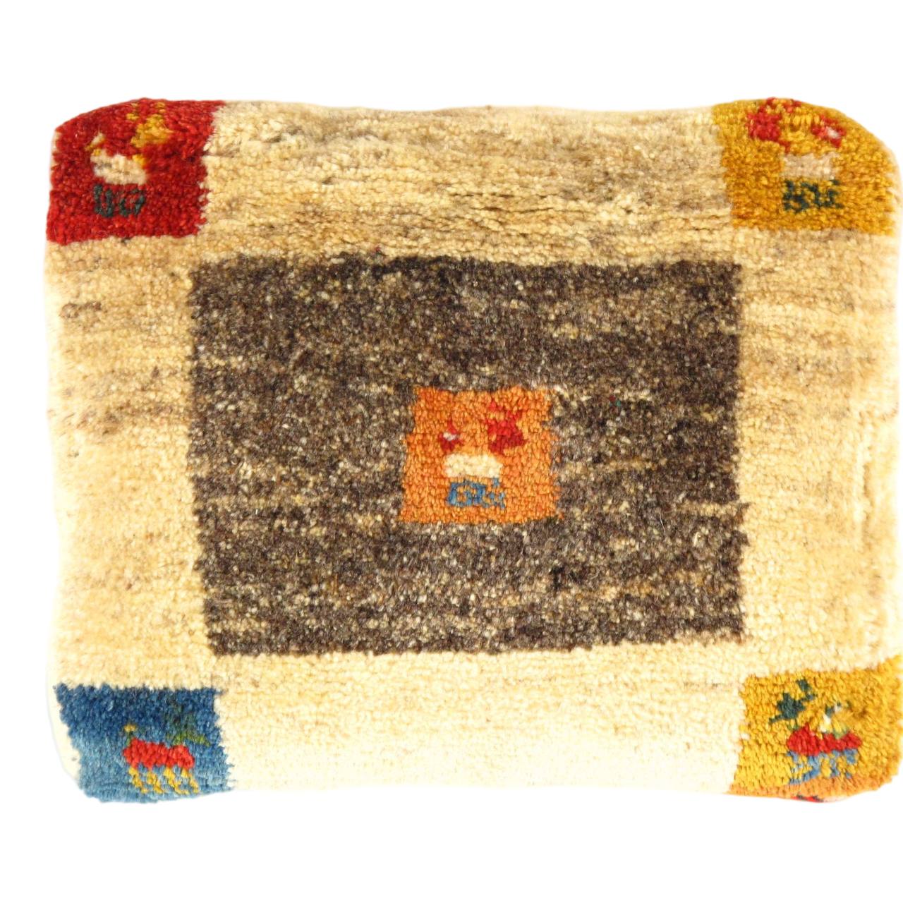 The word “Gabbeh” literally translates to “in the rough,” and it is an accurate description of this style of Persian rug. Gabbeh carpets are woven on makeshift ground looms constructed both of materials that are kept and hauled for long distances by the nomadic tribel, and also of materials that are found at each site where the tribe sets up camp. Due to the fact that part of the loom must be found at each site, a wide variety is introduced. Thus, these rugs are usually somewhat irregular in shape. But, for what they lack in perfectly uniform shape they more than make up for in character, durability and uniqueness.This Gabbeh pillow is made of high-quality LAMBS WOOL The piece was crafted with good workmanshi
