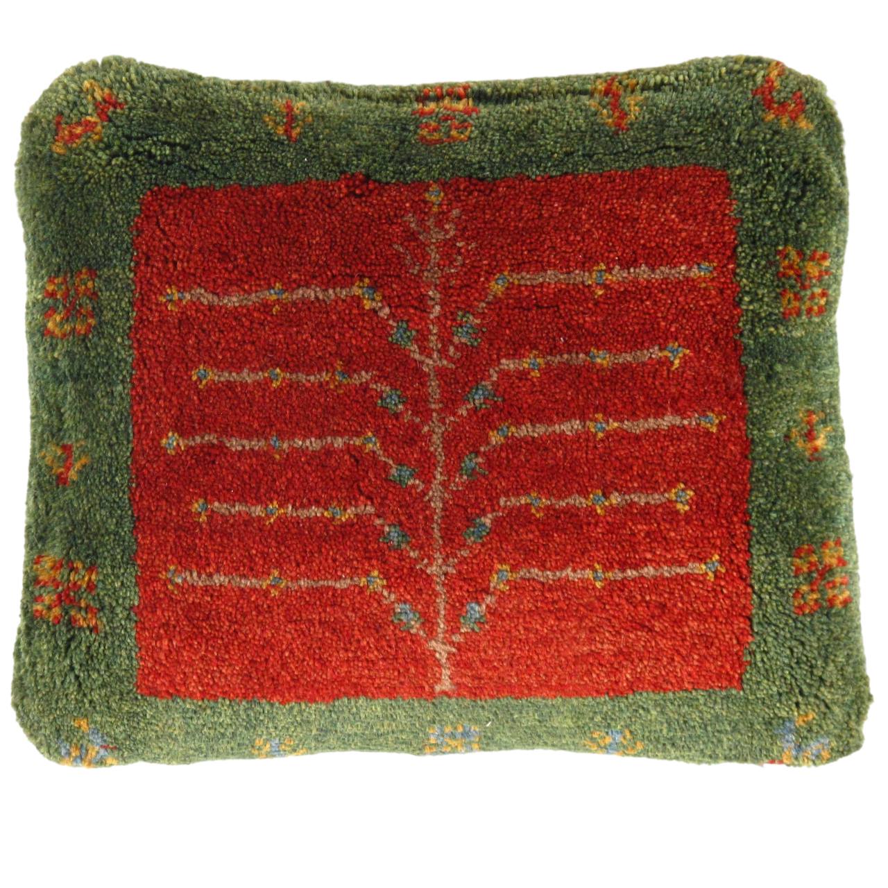 This Gabbeh pillow is made of high-quality LAMBS WOOL The piece was crafted with good workmanship.