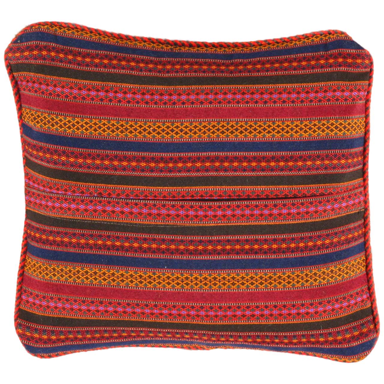 The word “Gabbeh” literally translates to “in the rough,” and it is an accurate description of this style of Persian rug. Gabbeh carpets are woven on makeshift ground looms constructed both of materials that are kept and hauled for long distances by the nomadic tribel, and also of materials that are found at each site where the tribe sets up camp. Due to the fact that part of the loom must be found at each site, a wide variety is introduced. Thus, these rugs are usually somewhat irregular in shape. But, for what they lack in perfectly uniform shape they more than make up for in character, durability and uniqueness.This Gabbeh pillow is made of high-quality LAMBS WOOL The piece was crafted with good workmanship.