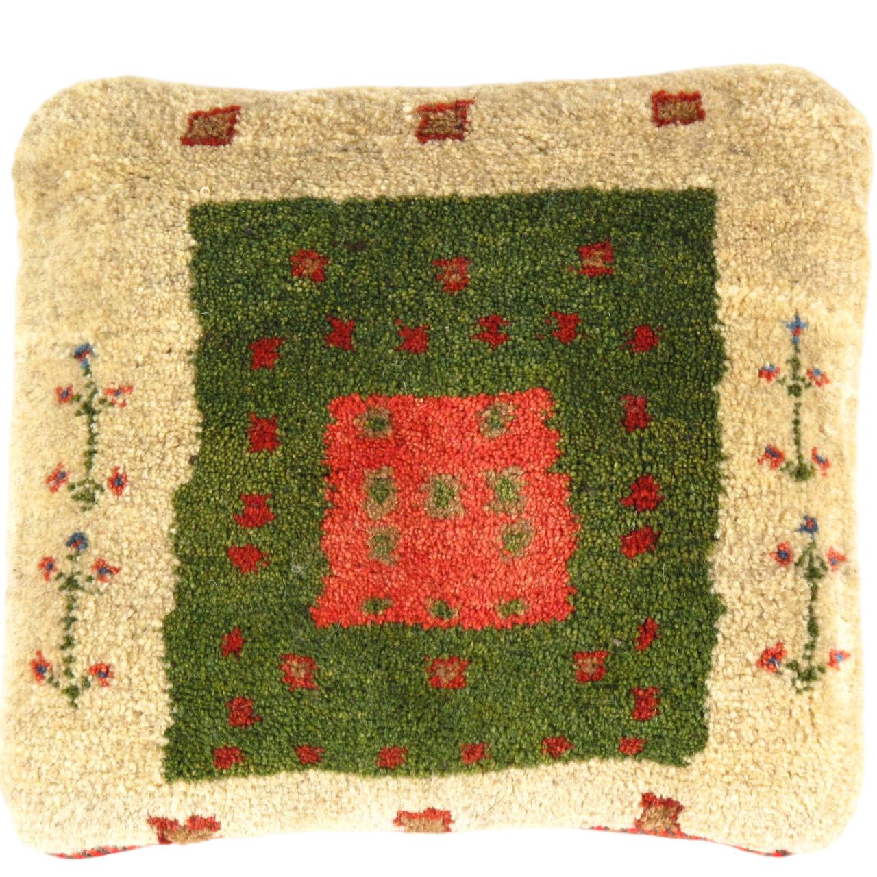 This Gabbeh pillow is made of high-quality LAMBS WOOL The piece was crafted with good workmanship.