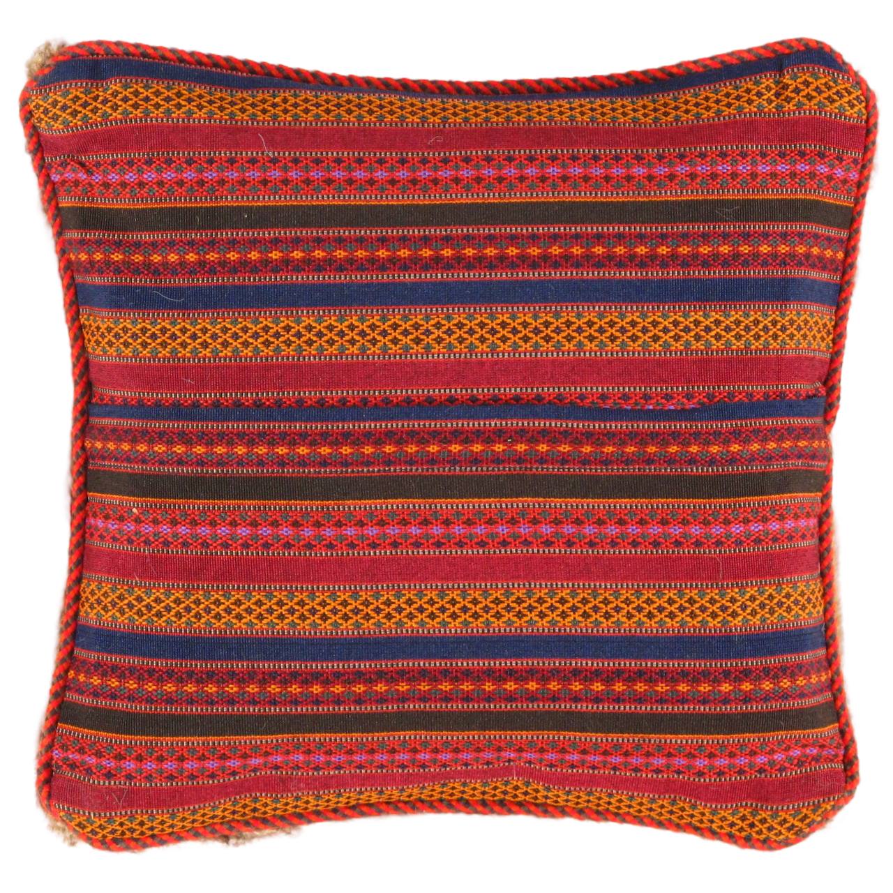 The word “Gabbeh” literally translates to “in the rough,” and it is an accurate description of this style of Persian rug. Gabbeh carpets are woven on makeshift ground looms constructed both of materials that are kept and hauled for long distances by the nomadic tribel, and also of materials that are found at each site where the tribe sets up camp. Due to the fact that part of the loom must be found at each site, a wide variety is introduced. Thus, these rugs are usually somewhat irregular in shape. But, for what they lack in perfectly uniform shape they more than make up for in character, durability and uniqueness.This Gabbeh pillow is made of high-quality LAMBS WOOL The piece was crafted with good workmanship.
