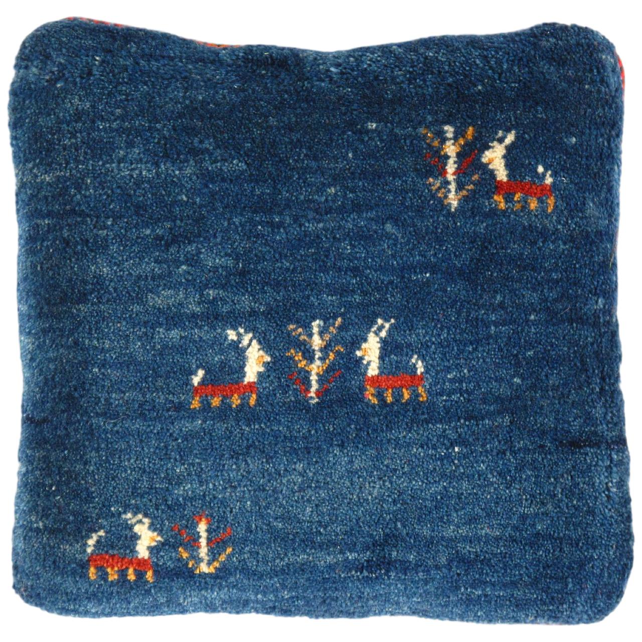 The word “Gabbeh” literally translates to “in the rough,” and it is an accurate description of this style of Persian rug. Gabbeh carpets are woven on makeshift ground looms constructed both of materials that are kept and hauled for long distances by the nomadic tribel, and also of materials that are found at each site where the tribe sets up camp. Due to the fact that part of the loom must be found at each site, a wide variety is introduced. Thus, these rugs are usually somewhat irregular in shape. But, for what they lack in perfectly uniform shape they more than make up for in character, durability and uniqueness.This Gabbeh pillow is made of high-quality LAMBS WOOL The piece was crafted with good workmanship.