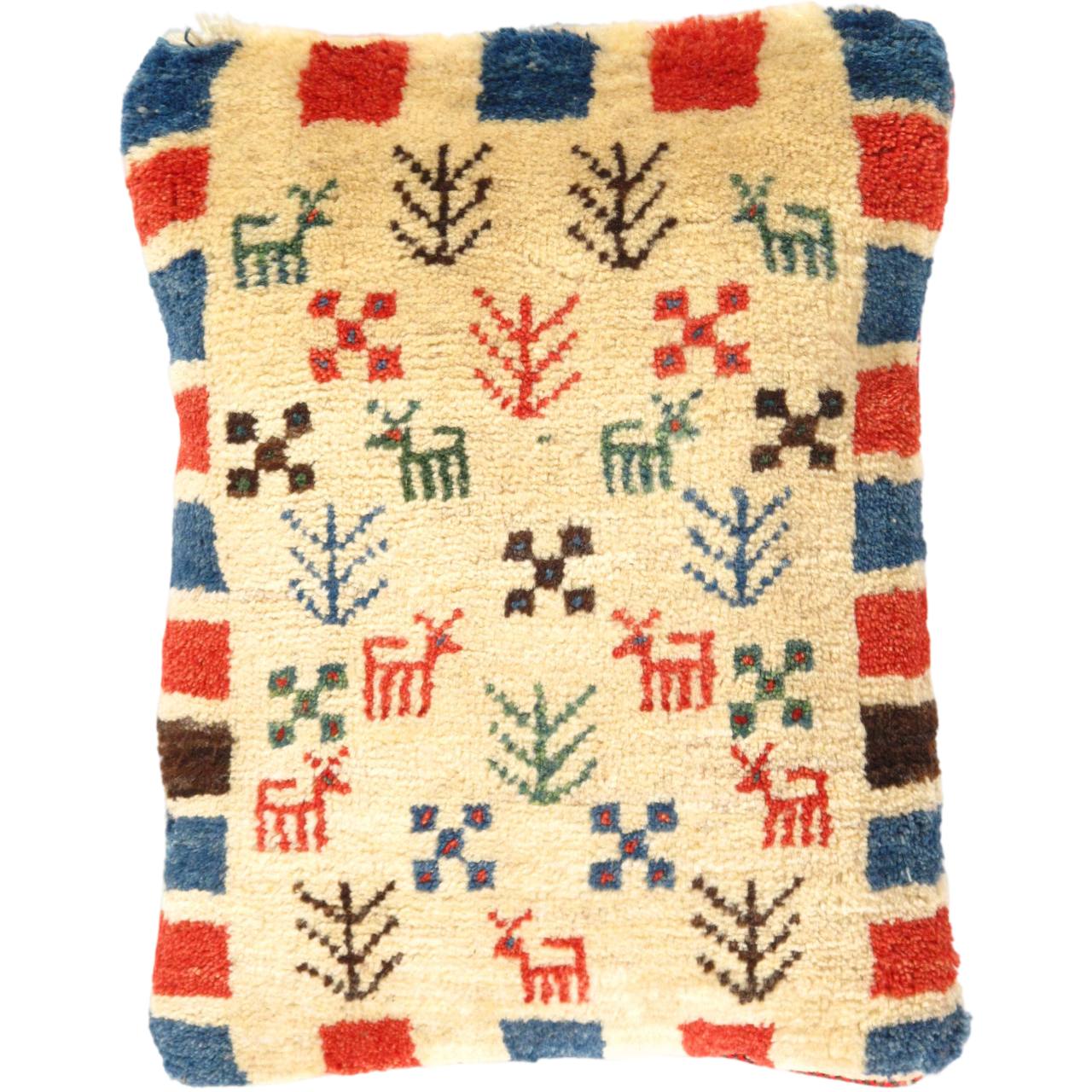 This Gabbeh pillow is made of high-quality LAMBS WOOL The piece was crafted with good workmanship.