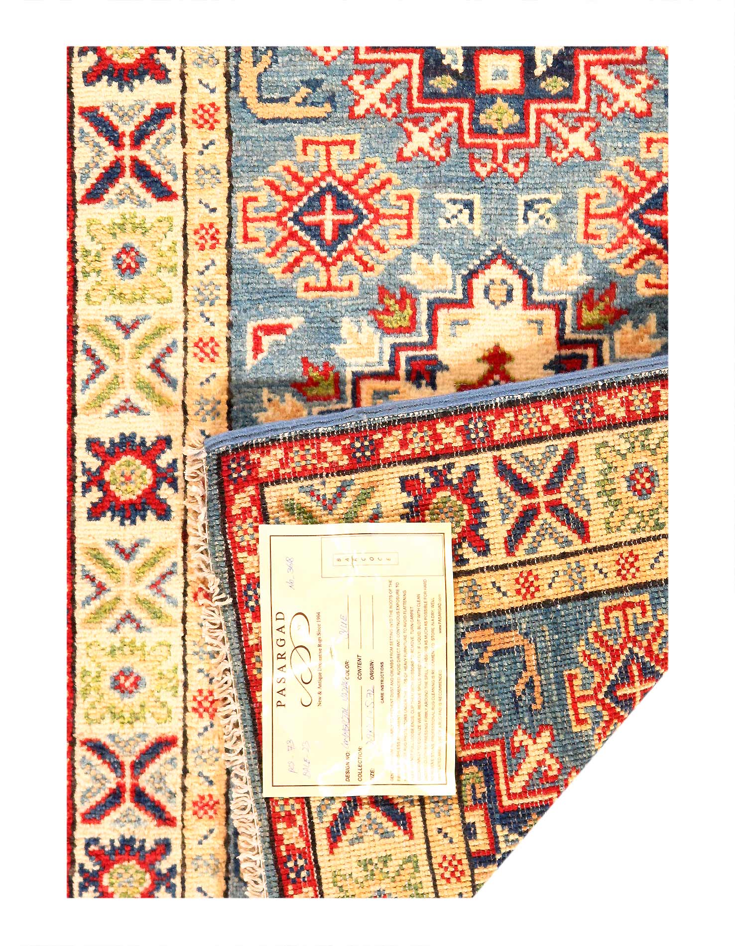 Original Super Kazak Rug. Handmade Hand-knotted,Very Practical for High Traffic,Hand-Spun Lamb's Wool on a Cotton Foundation,Vegetable Dyed,This rug is handmade from 100-percent premium, hand-spun wool, and employ ancient pot-dying techniques to give them their authentic look.Kazak is a modern shape of old Caucasian rugs which strictly adheres to traditional design elements of the Caucasus. It has elements such as the stepped hooked polygons, geometrical medallions and rosettes, presented in more stylized manner and with a new dimension. Natural dyes produce soft luminous shades and abrashes causing a beautiful sheen. Hand spun wool yarn is normally used in the variety of vibrant warm colors. Kazaks rugs in our collection are all fine quality pieces from Pakistan made with Ghazni hand spun wool and natural dyes