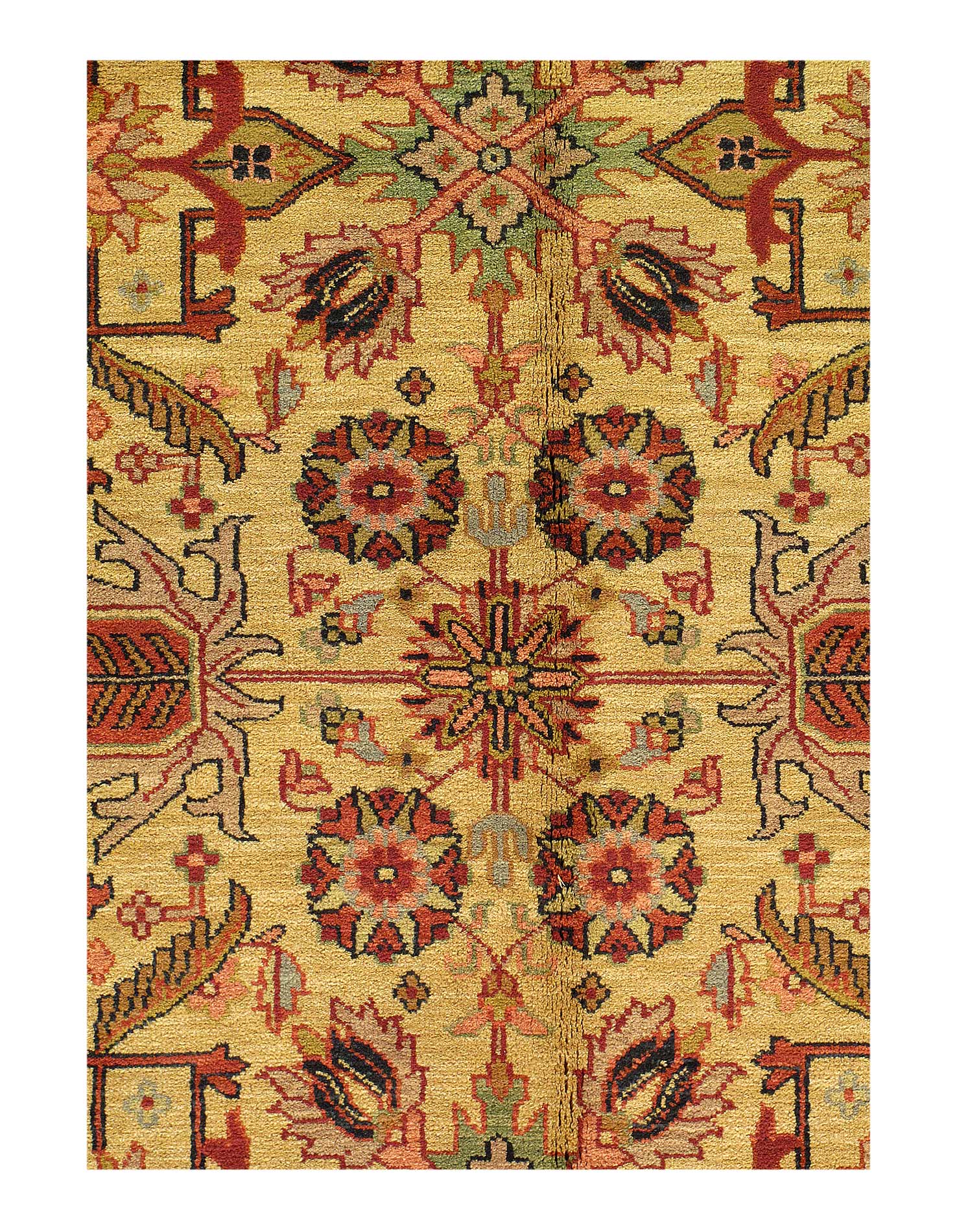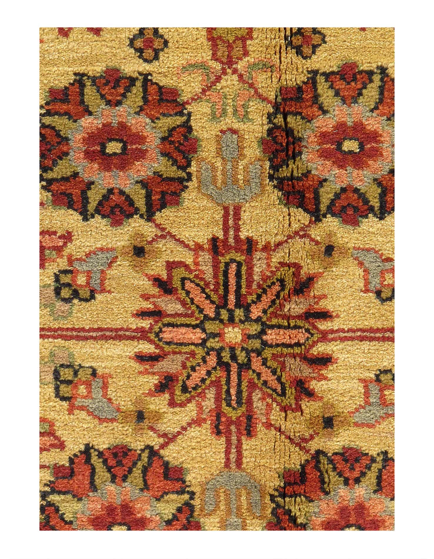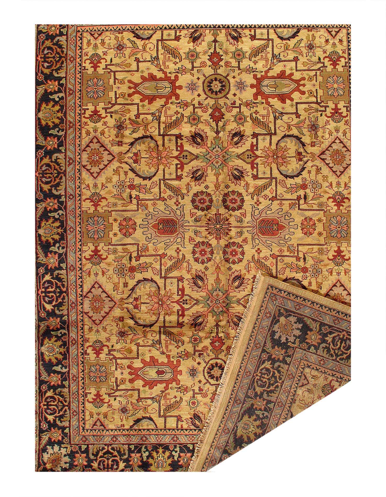 This rug features Gold / Navy colored, is 100% hand knotted. 100% fine wool.