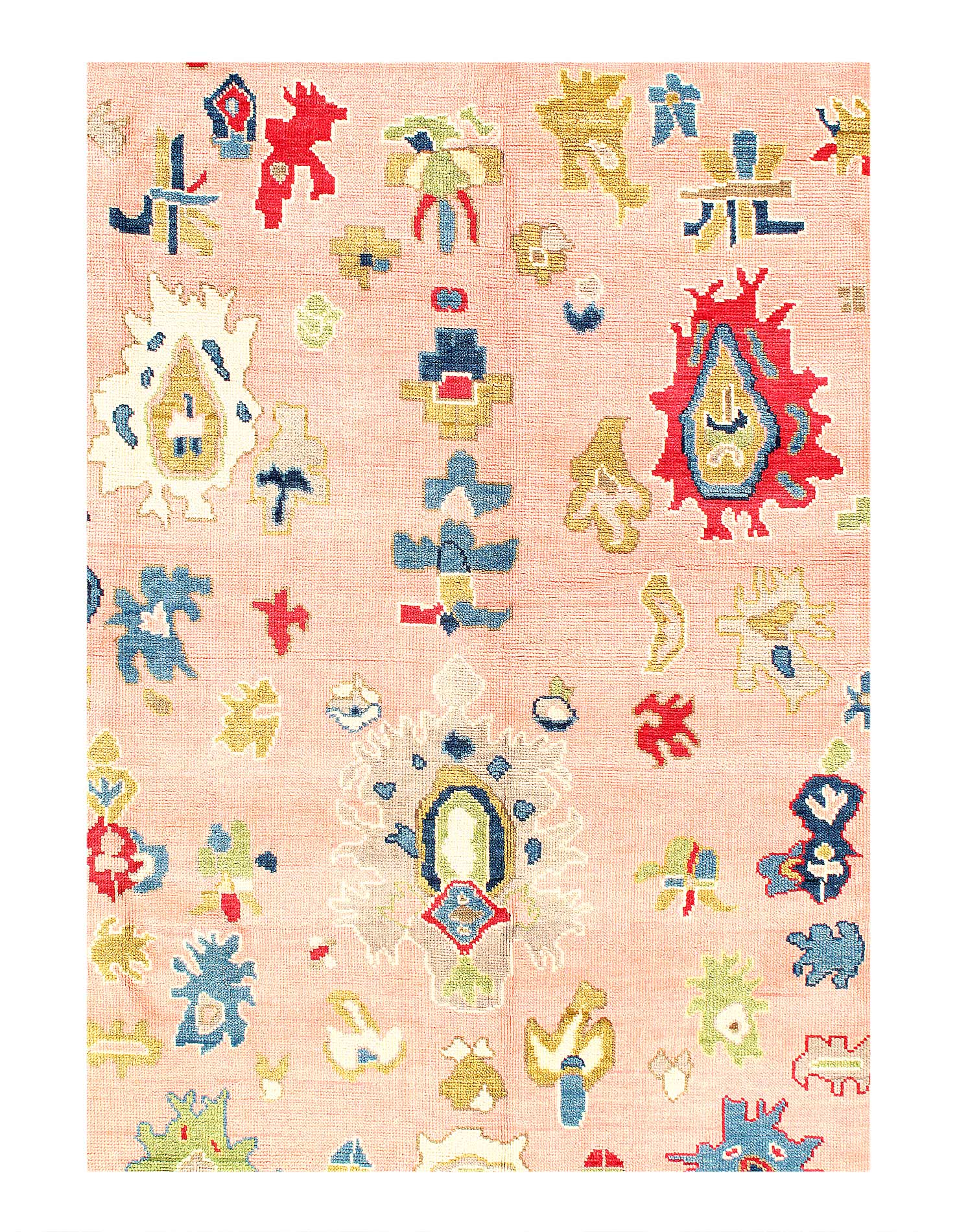 Original Turkish OUSHAK Design. Handmade Hand-knotted. Lamb's wool on a Cotton foundation. From India. This rug has a dense, soft pile, and excellent quality, to ensure that you will enjoy the look and feel of your rug for years to come. D12214