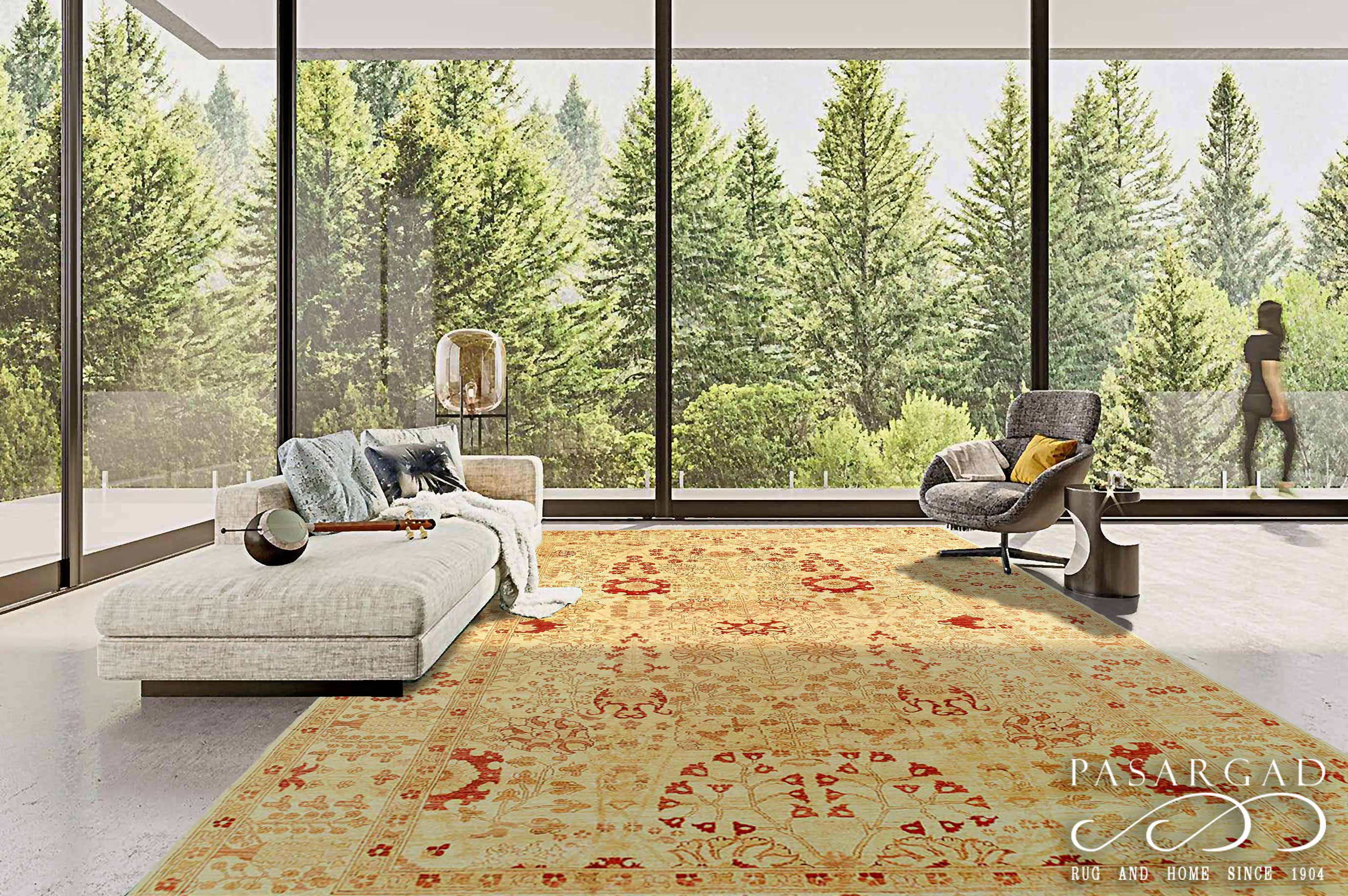 This Oushak Rug is Hand-Knotted Wool tan celebrated for its understated elegance, is greatly influenced by original antique Turkish Oushaks. Every Oushak reproduction is hand-knotted by master weavers capturing the look and spirit of the original Oushaks. Artfully made from hand spun New Zealand wool, each rug allows a texture that is soft and luxurious. This rug set a standard of excellence that will outlast the whims of fashion and without a doubt become tomorrow’s antiques!