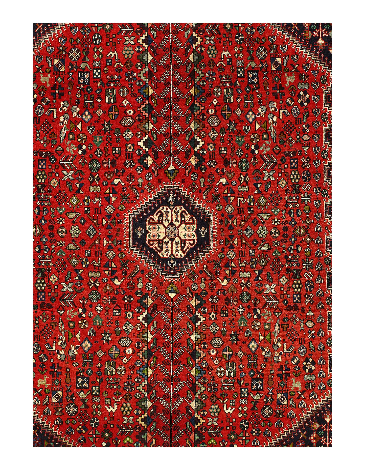 A very attractive and durable carpet woven in the village of Abadeh in southwestern Persia. The pattern is influenced by nomads and usually consists of a hexagon in the middle containing a rosette or a medallion. A good bargain since the carpet retains its value for a long time.