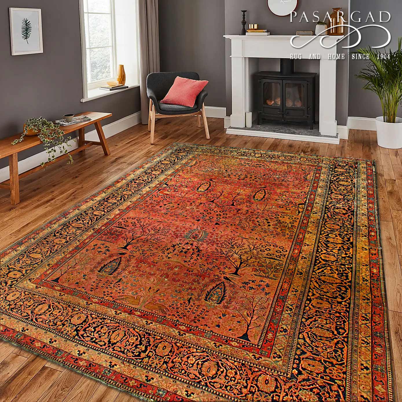 Magnificent And Luxurious Tree Of Life Design Antique Persian Mohtashem Kashan Rug, Country of Origin / Rug Type: Persian Rug, Circa Date: 1870 – This gorgeous antique Persian Mohtashem Kashan rug is a masterpiece of irresistible intrigue and idyllic allure. Graceful flora and fauna imagery dominate this luxurious rug’s facade in an exquisitely refined and detailed fashion.