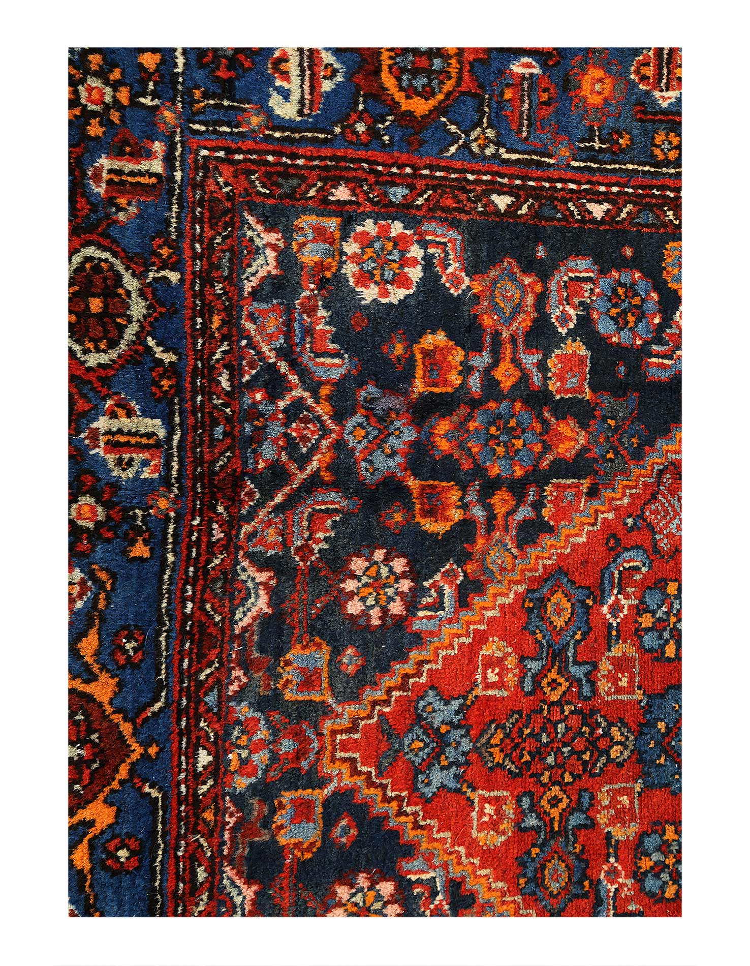 Bidjar is a town in Persian Kurdistan located in north-west Persia. The Bidjar name is also used to describe the antique rugs that were produced in the many villages in the surrounding vicinity. The Bidjar is noted as being the stiffest carpet made; they are very heavy in relation to their size, and very thick and durable. All of the knots are symmetrical and the rows are beaten down during the weaving process producing a dense compact fabric. Given their thickness and construction Bidjar rugs can be difficult to fold. The many designs depict the Kurdish influence of the area and often floral and classical geometric motifs are employed as well as the use of large, whimsical medallion designs. The color palate is rich and jewel toned making the Bidjar a highly desirable rug sought after by designers.