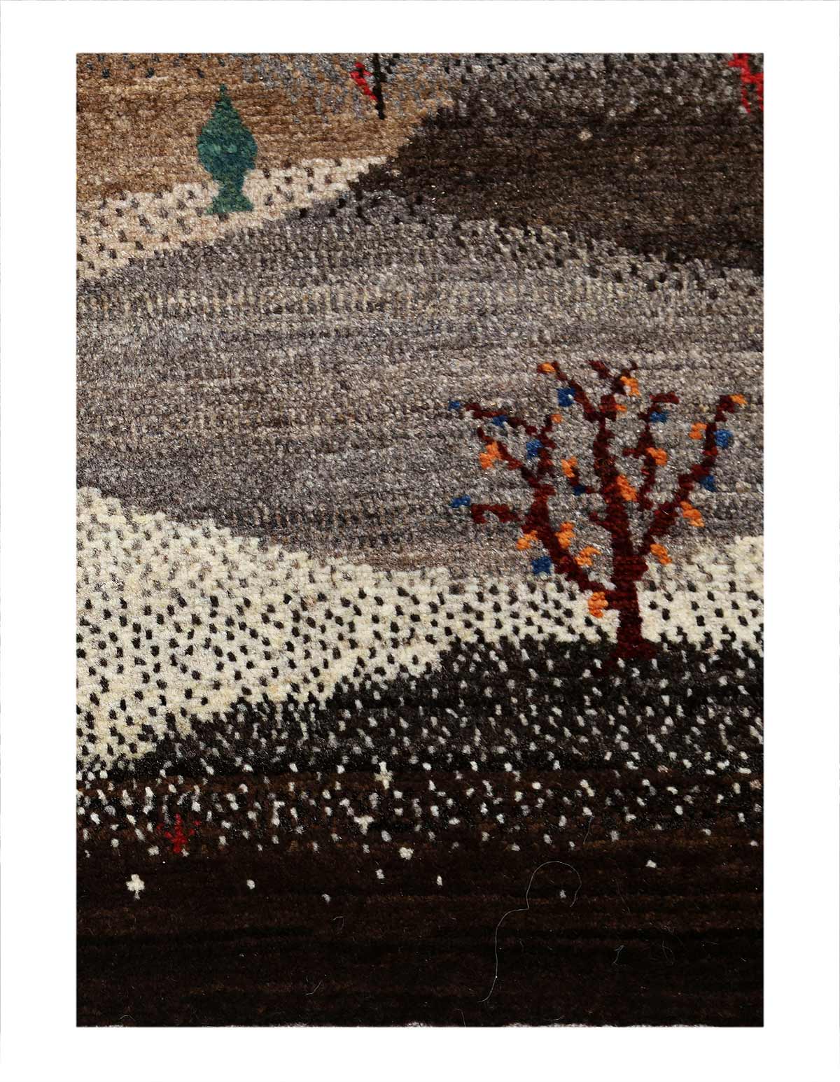 Gabbeh Rugs feature hand-spun wool in both the pile and foundation. These rugs are characterized by their abstract designs that relies upon open fields of color and a playfulness with geometric figures used to depict a story, person, or event. Gabbeh Rugs are popular in a contemporary or modern setting and are extremely durable, usually small to medium size