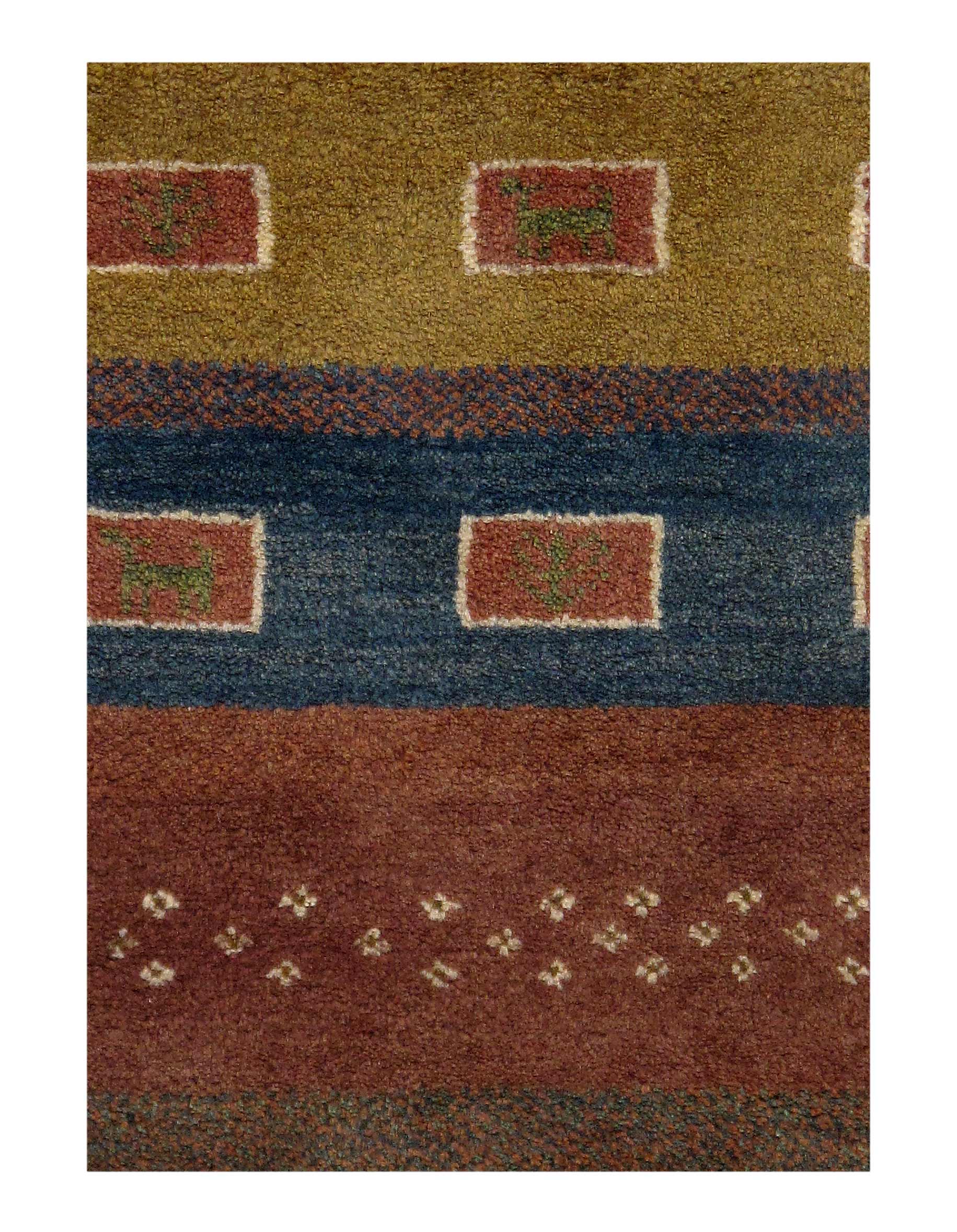 Gabbeh rugs are made by the nomadic Qashqai tribes of southern Iran. They are rough cut and long piled rugs of rich color and best quality wool. They are sometimes referred to by the heritage of the specific tribe by which they are woven, such as “a Lori rug,” or by the name of the city in which they are most often traded, such as “a Shiraz rug” or “a Shiraz Gabbeh.”