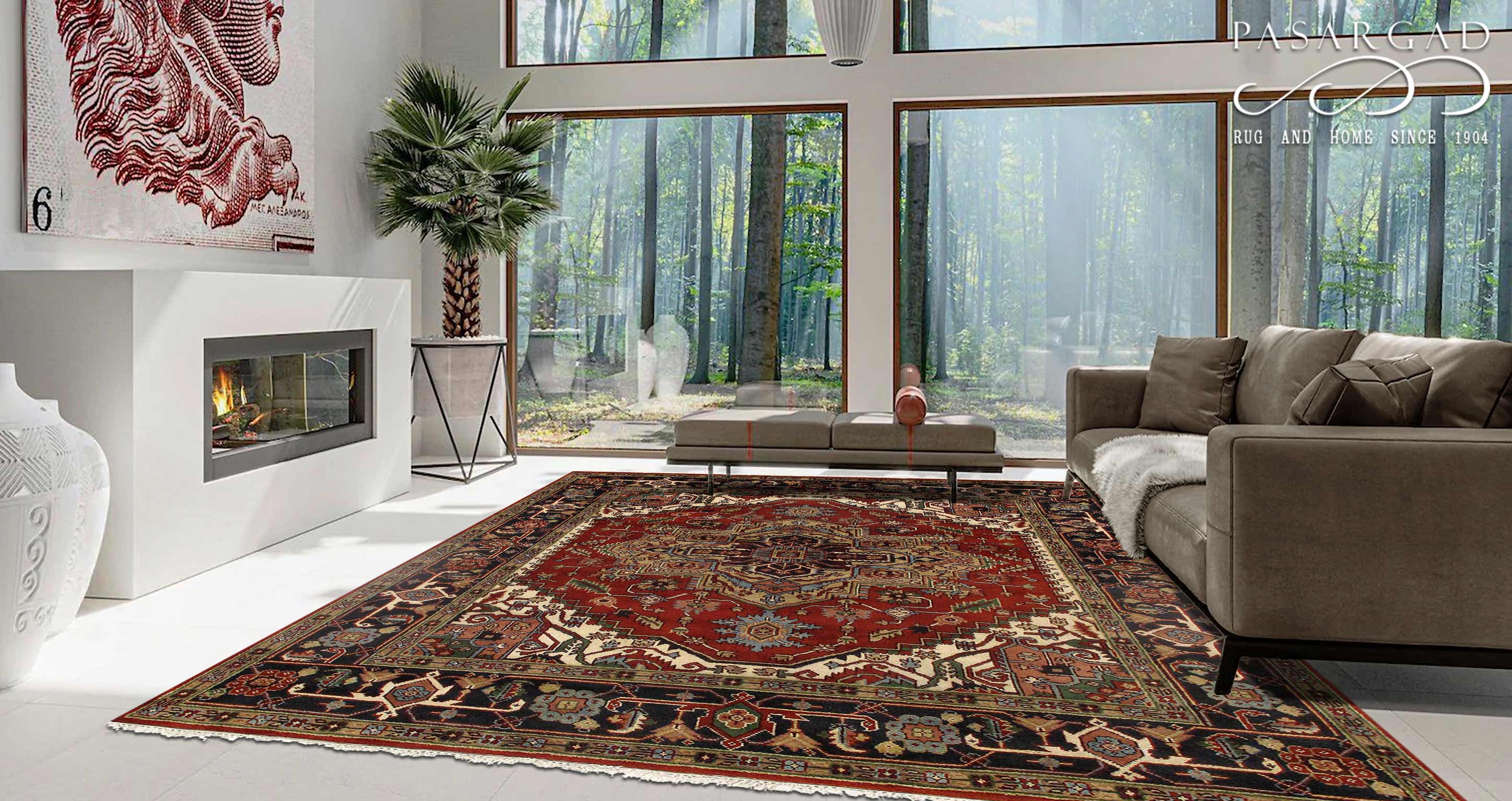 Serapi design rug. Handmade Hand-knotted in fine lambswool. Lamb's Wool on a Cotton Foundation Vegetable Dyed Hand-Spun Wool Rug The Serapi Rug is one of the most sought after rugs particularly in the USA and England for many years. No other rug so epitomizes the "East Coast Establishment" than the Serapi carpet This rug has a dense, soft pile, and excellent quality, to ensure that you will enjoy the look and feel of your rug for years to come .