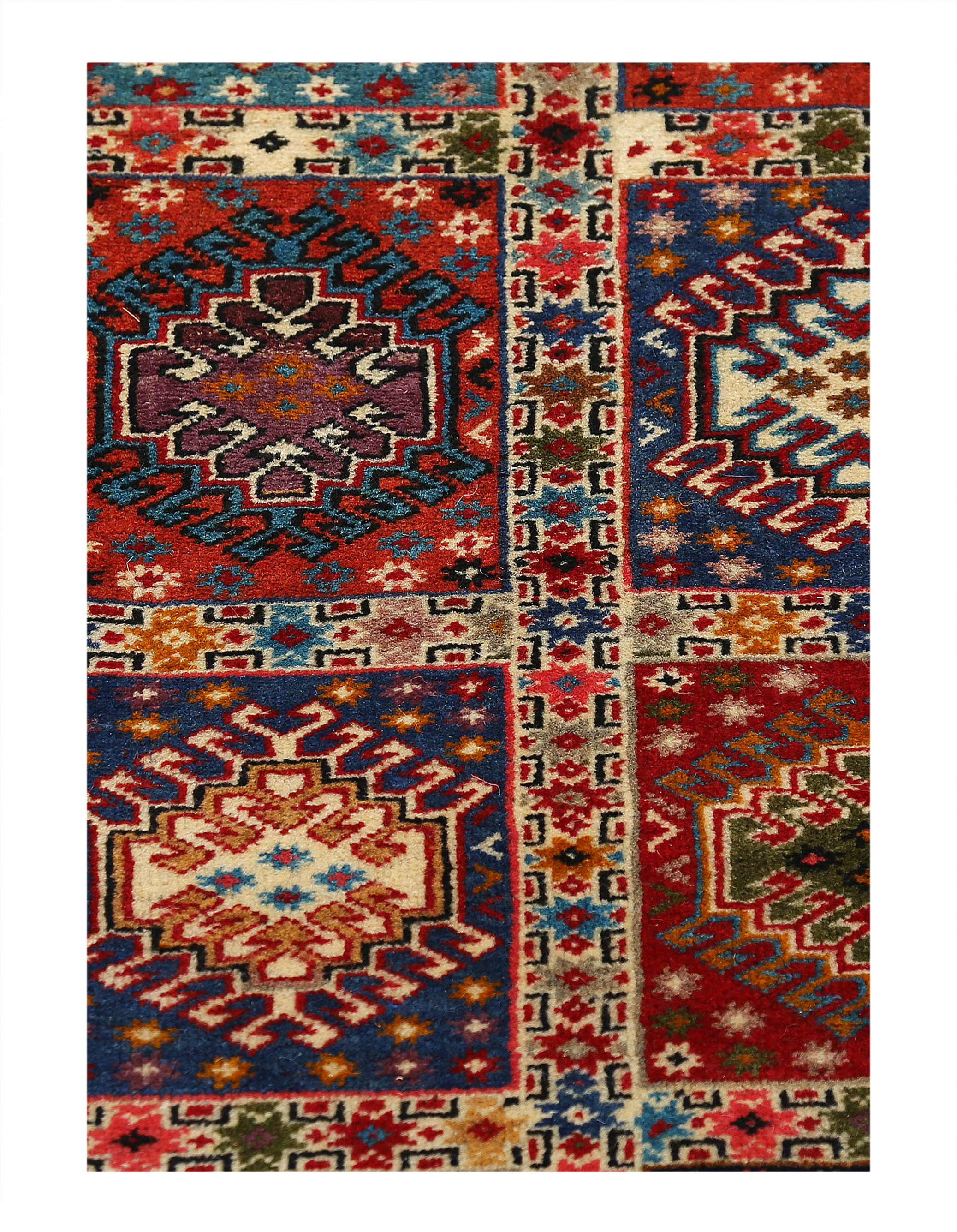 The pile used in Yalameh rugs is very fine, particularly in comparison to other tribal designs, using soft wool based on a Wool foundation. The pattern is distinctive with large repeated diamonds in a straight line down the carpet, often with geometrical animal or human prints scattered across the field. Dark red or light brown on a blue or orange background is most common for Yalameh, similar to Shiraz rugs, the rugs compliment modern or minimalist furniture beautifully, giving the living space an aura of luxurious style and warm.