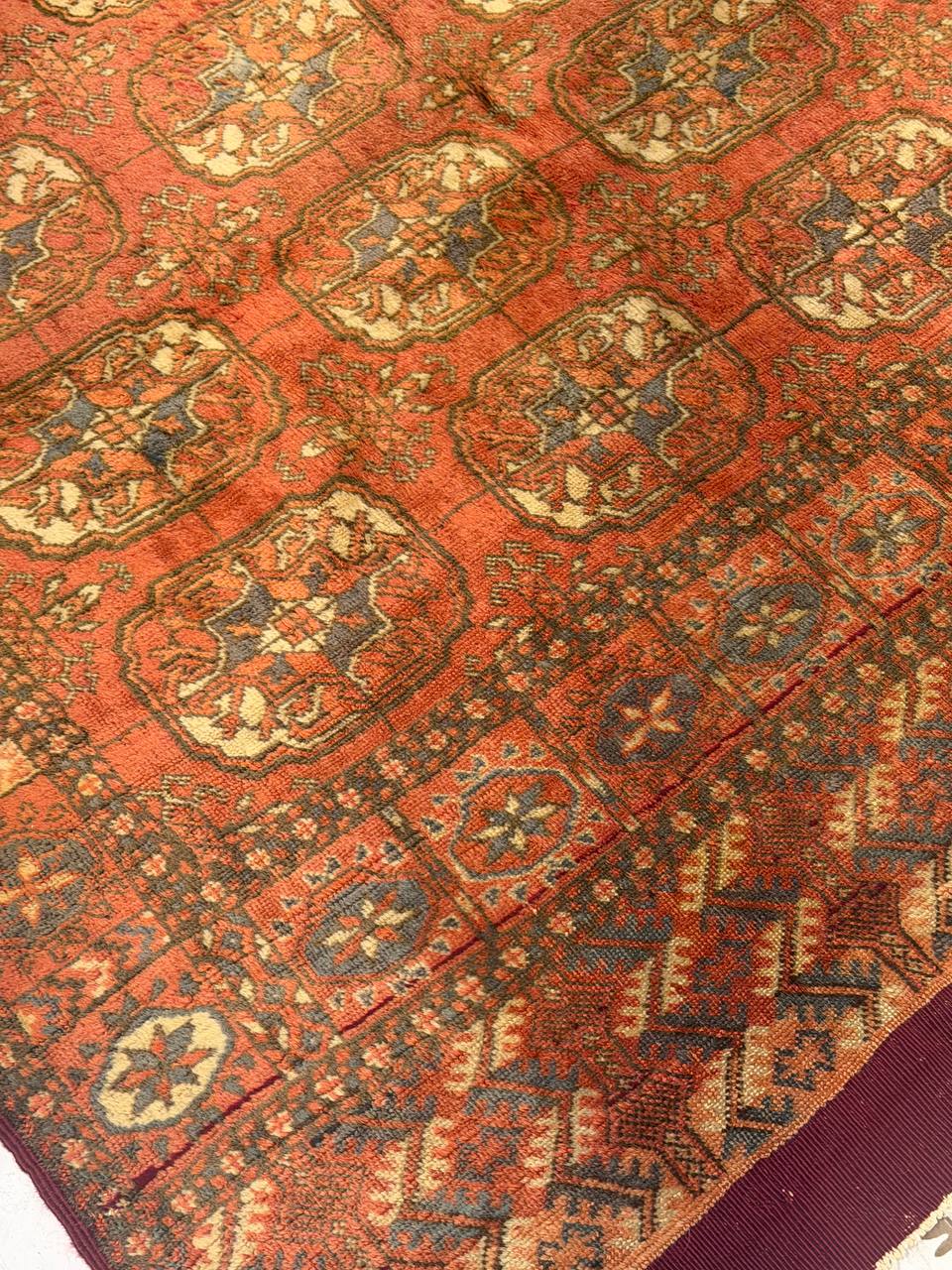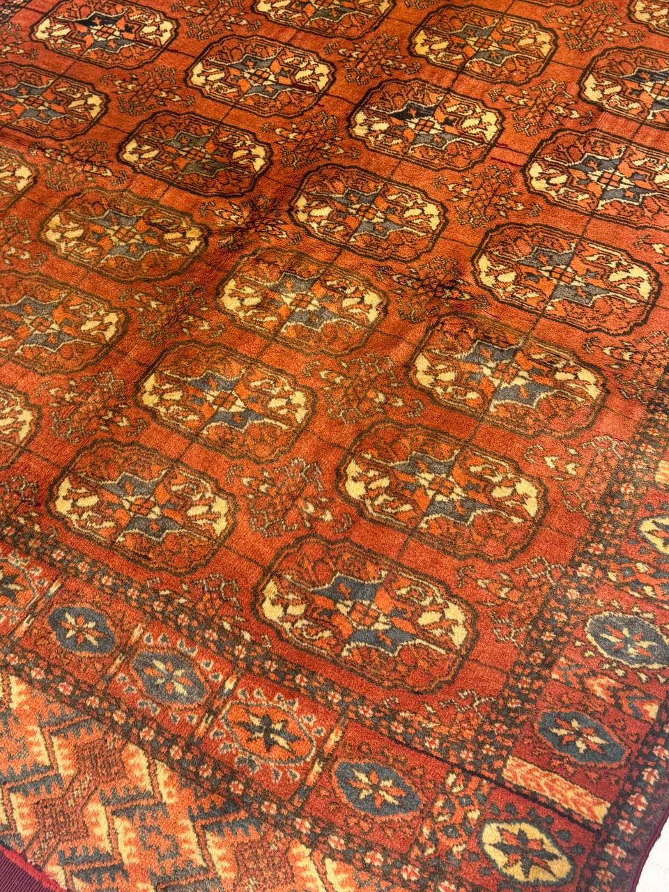 Discover the exquisite beauty of the Traditional Turkmen Handmade Rug, a testament to the rich cultural heritage and skilled craftsmanship of Turkmenistan. This captivating rug showcases intricate geometric patterns and vibrant colors, characteristic of the traditional style. Each rug is meticulously handwoven by talented artisans, using time-honored techniques passed down through generations. The attention to detail and precision in every stitch are evident, resulting in a rug that exudes timeless elegance and unrivaled quality. The Traditional Turkmen Handmade Rug will instantly add a touch of warmth and authenticity to any space, be it a cozy living room, a stately dining area, or a grand entrance hall. Immerse yourself in the rich history and artistry of Turkmen culture with this remarkable masterpiece.