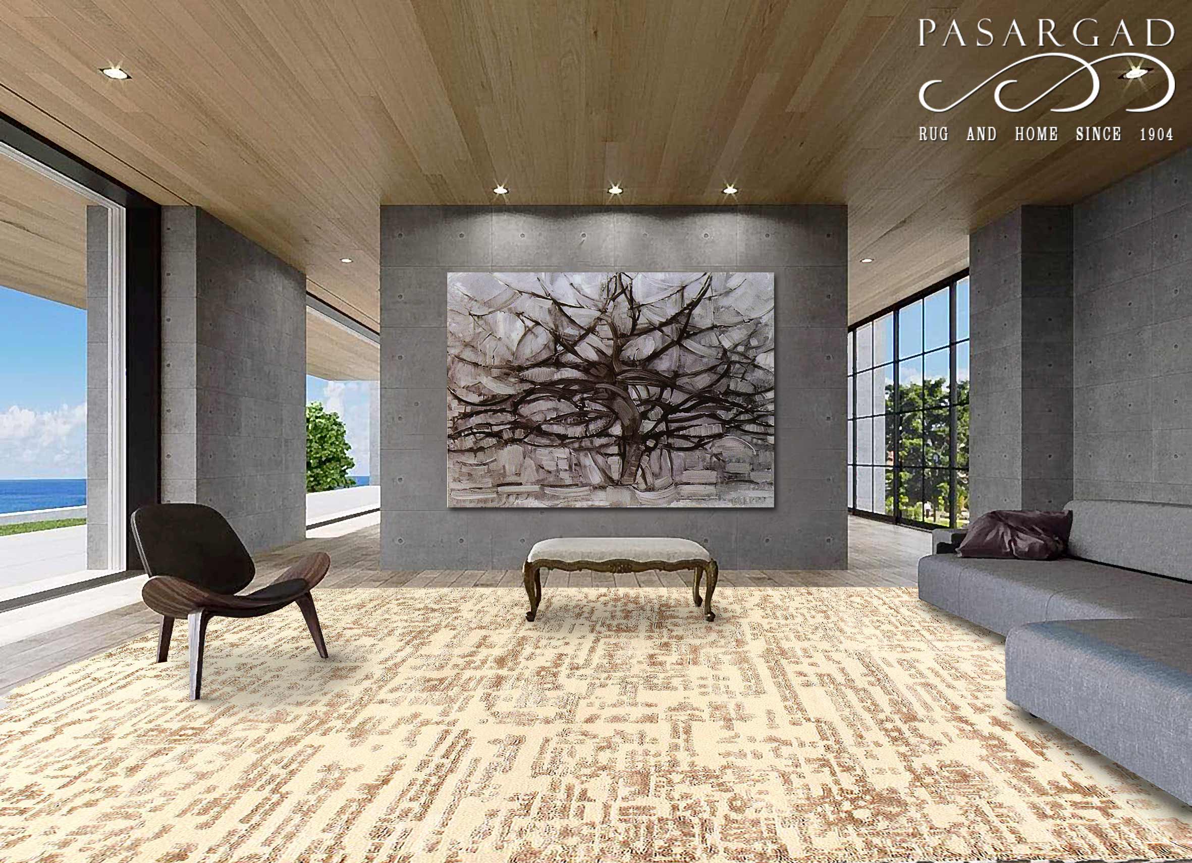 Pasargad DC Modern Collection. Hand-knotted rug made of lambs wool & bamboo silk. Very soft and comfortable rug. From India.