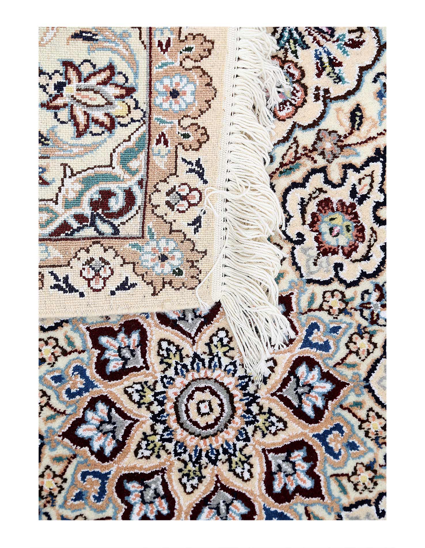 Hand knotted Nain rug ,Original Fine Persian Rug. Handmade Hand-knotted Silk & wool on a Silk .Classical combination of colors, cream ground .