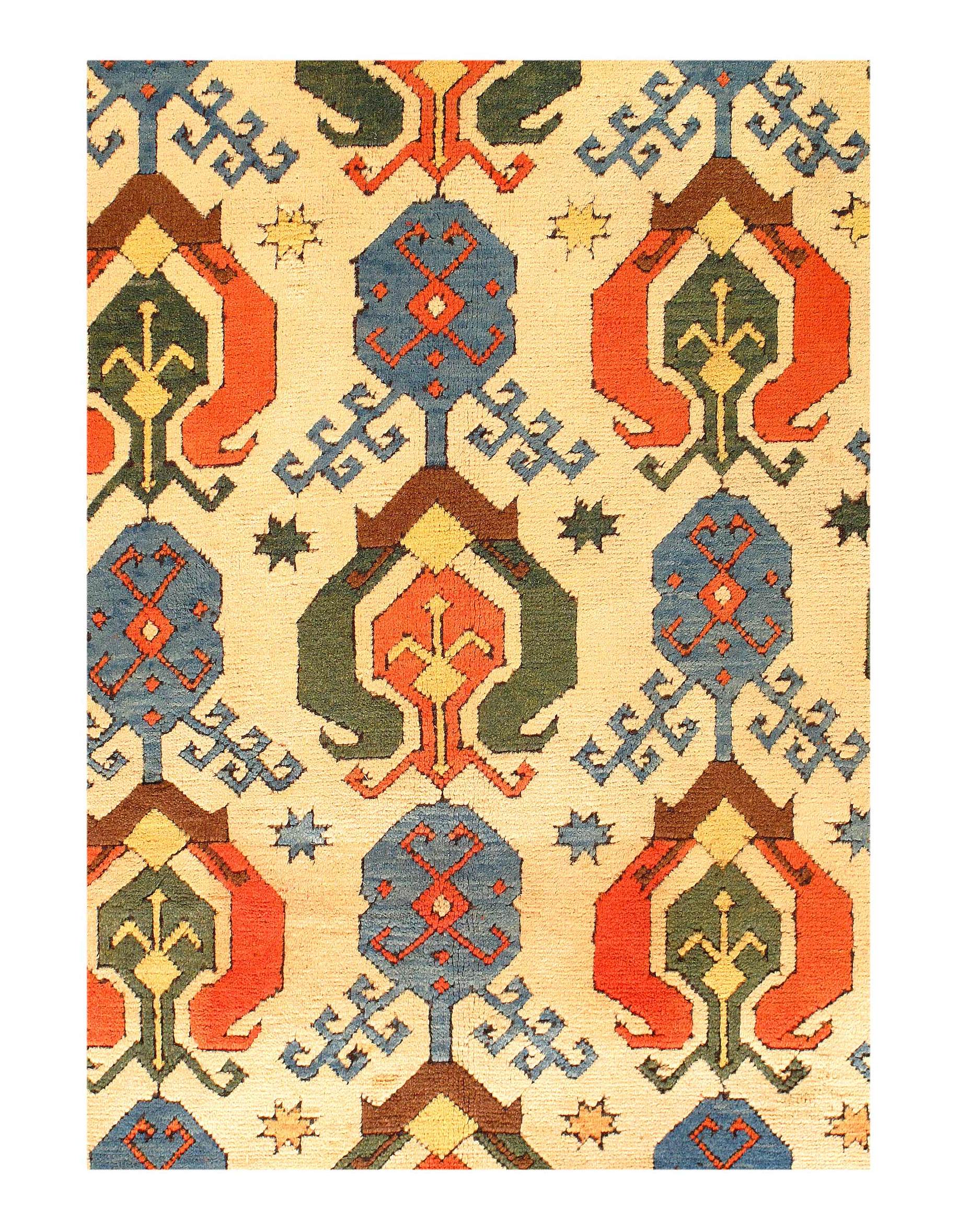 Turkish Serapi design rug. Handmade and hand-knotted in fine lambswool on a cotton foundation. Vegetable dyed hand-spun wool rug.