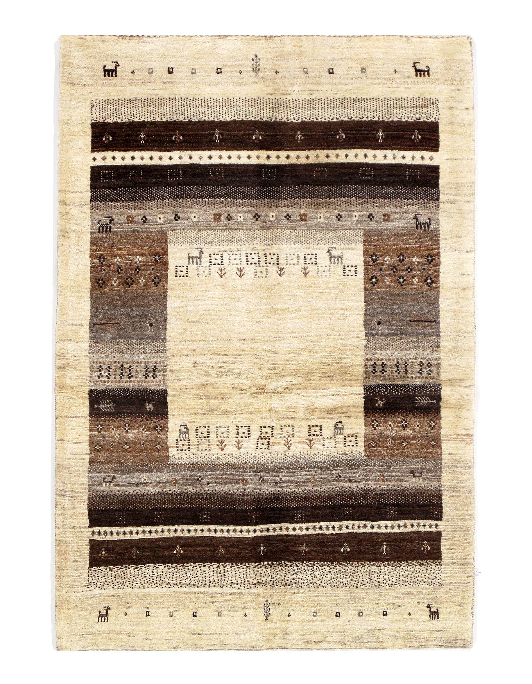 Gabbeh rugs are made by the nomadic Qashqai tribes of southern Iran. They are rough cut and long piled rugs of rich color and best quality wool. They are sometimes referred to by the heritage of the specific tribe by which they are woven, such as “a Lori rug,” or by the name of the city in which they are most often traded, such as “a Shiraz rug” or “a Shiraz Gabbeh.”
