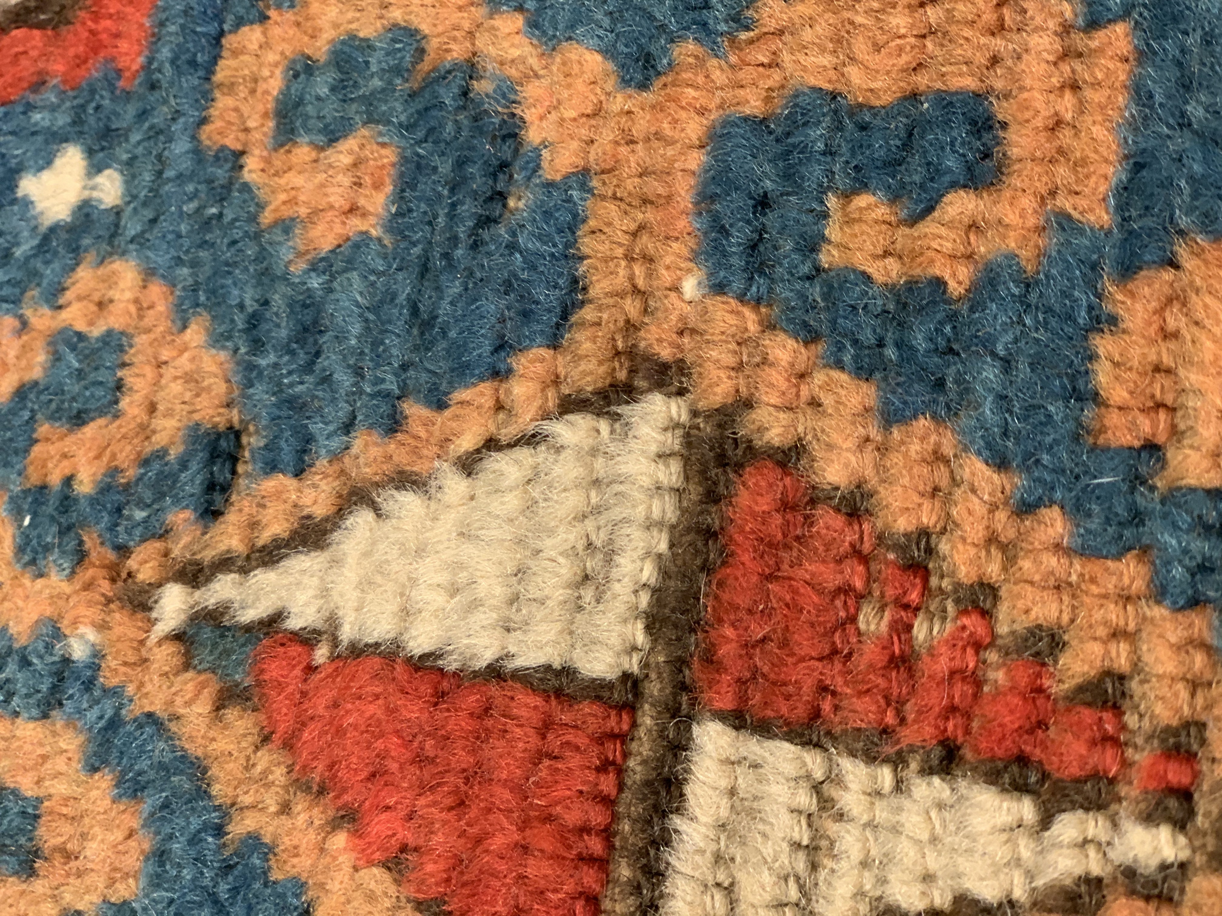 Kazak is a modern shape of old Caucasian rugs which strictly adheres to traditional design elements of the Caucasus. It has elements such as the stepped hooked polygons, geometrical medallions and rosettes, presented in more stylized manner and with a new dimension. Natural dyes produce soft luminous shades and abrashes causing a beautiful sheen. Handspun wool yarn is normally used in the variety of vibrant warm colors.
