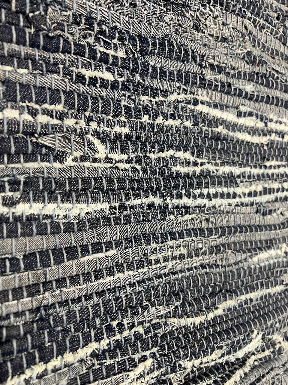 This sustainable rug is a versatile, stylish, and environmentally conscientious choice as it is made from 100% natural fibers. With a thick 1/2 inch deep pile, the Blue Jeans Rug is hand crafted of recycled denim by highly skilled weavers in north central India using the quality construction techniques of yesteryear. The Blue Jeans Rug outer blue band of cotton perfectly showcases the natural denim colors and weft and warp of cotton and hemp in the interior field. With varying shades of blue throughout the rug that will complement any decor , Available in different sizes ....