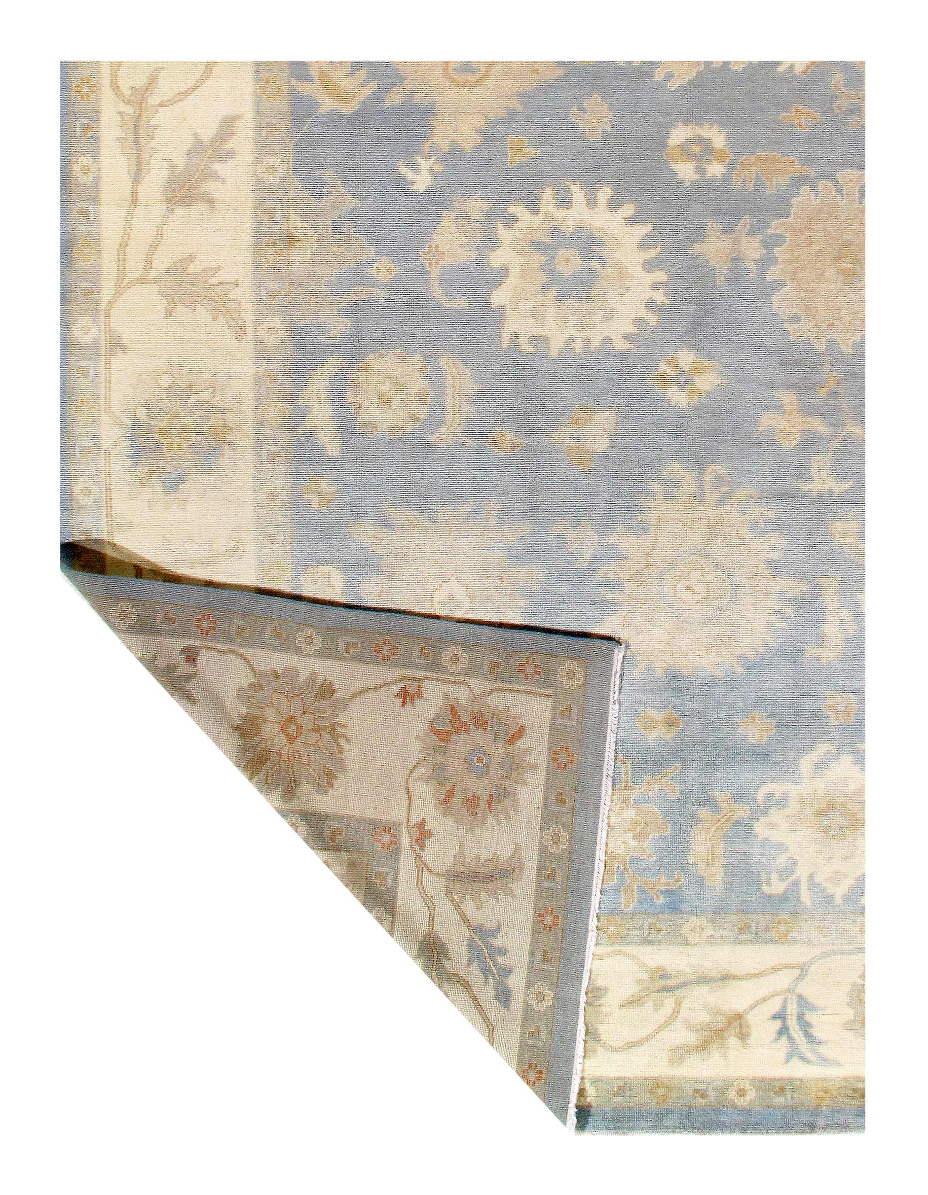 This Oushak Hand-Knotted Wool Light Blue Area Rug celebrated for its understated elegance, is greatly influenced by original antique Turkish Oushaks. Every Oushak reproduction is hand-knotted by master weavers capturing the look and spirit of the original Oushaks. Artfully made from hand spun New Zealand wool, each rug allows a texture that is soft and luxurious. This rug set a standard of excellence that will outlast the whims of fashion and without a doubt become tomorrow’s antiques!