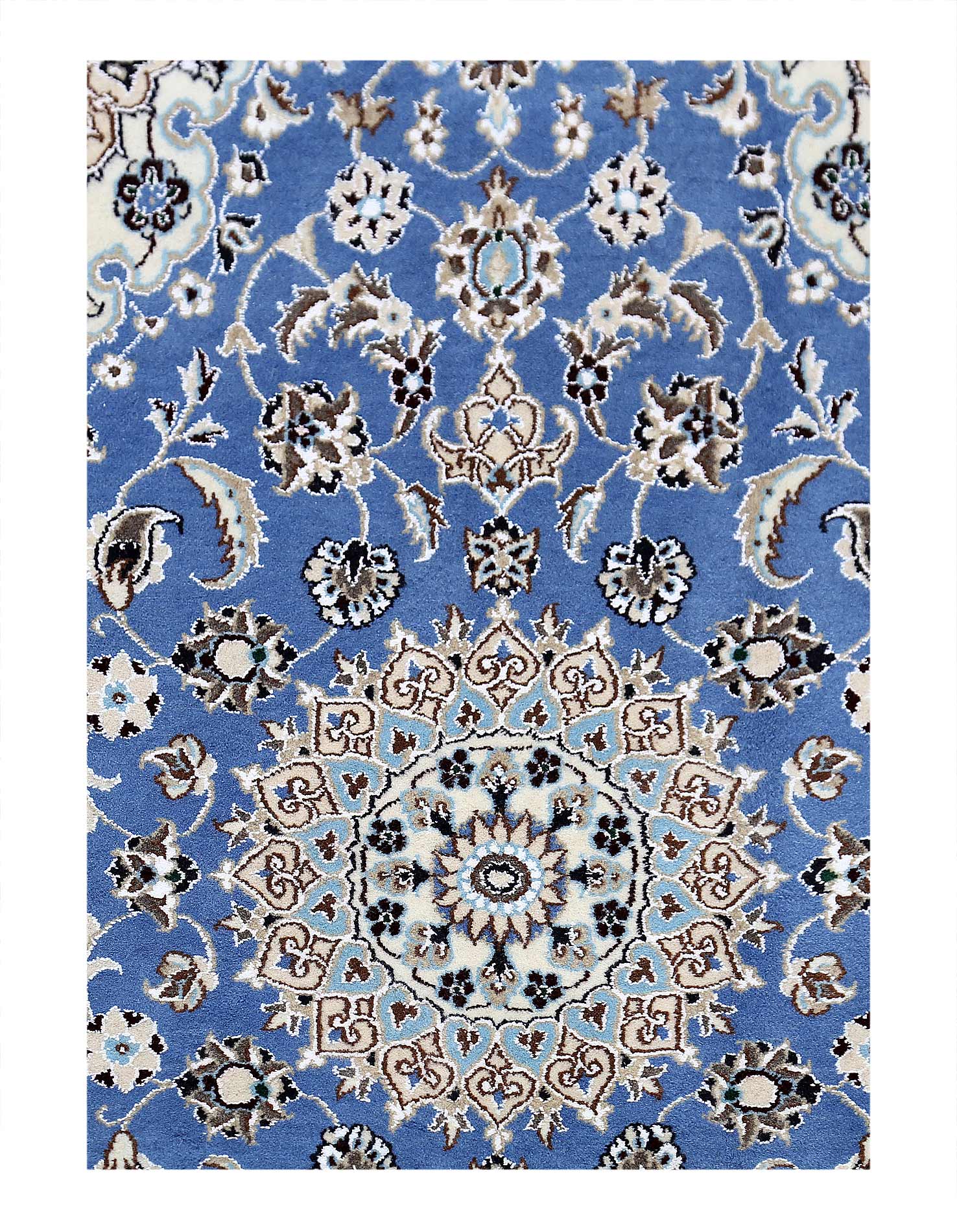Nain rugs are renowned for their detail and fine use of outlining along the central motifs. Breaking from the classical style of many vintage rugs produced around central Iran, Persian Nain rugs became renowned for their modern appeal and personal style, establishing the classical motifs of many other regional rugs, only through a more precise lens. In this striking piece, the precision is particularly visible along the heart of the vintage Persian rug, where the attention to detail allows each individual color to stand out as a unique part of the whole. The surrounding borders help ground the masterpiece and add horizontal intrigue to the natural elements within, which are arranged vertically to establish a cascading effect.