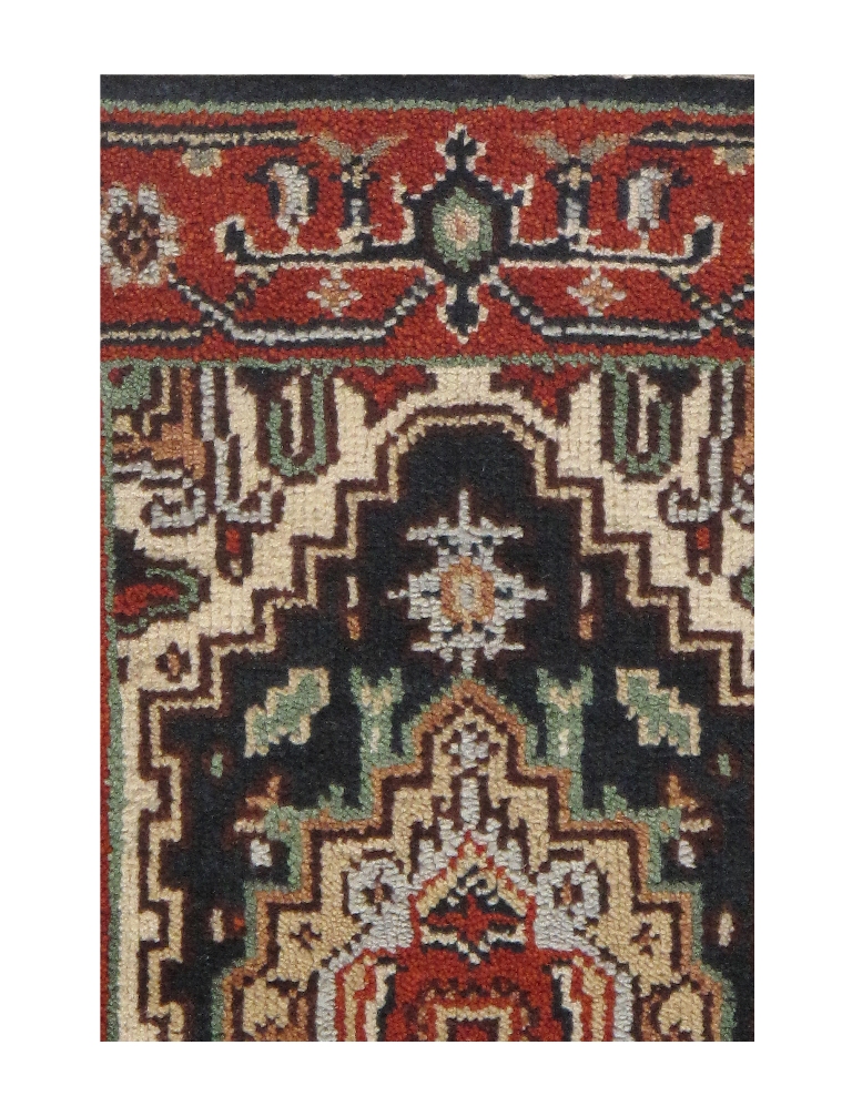 Indo Serapi design rug. Handmade Hand-knotted in fine lambswool. Lamb's Wool on a Cotton Foundation Vegetable Dyed Hand-Spun Wool Rug The Serapi Rug is one of the most sought after rugs particularly in the USA and England for many years. No other rug so epitomizes the "East Coast Establishment" than the Serapi carpet This rug has a dense, soft pile, and excellent quality, to ensure that you will enjoy the look and feel of your rug for years to come