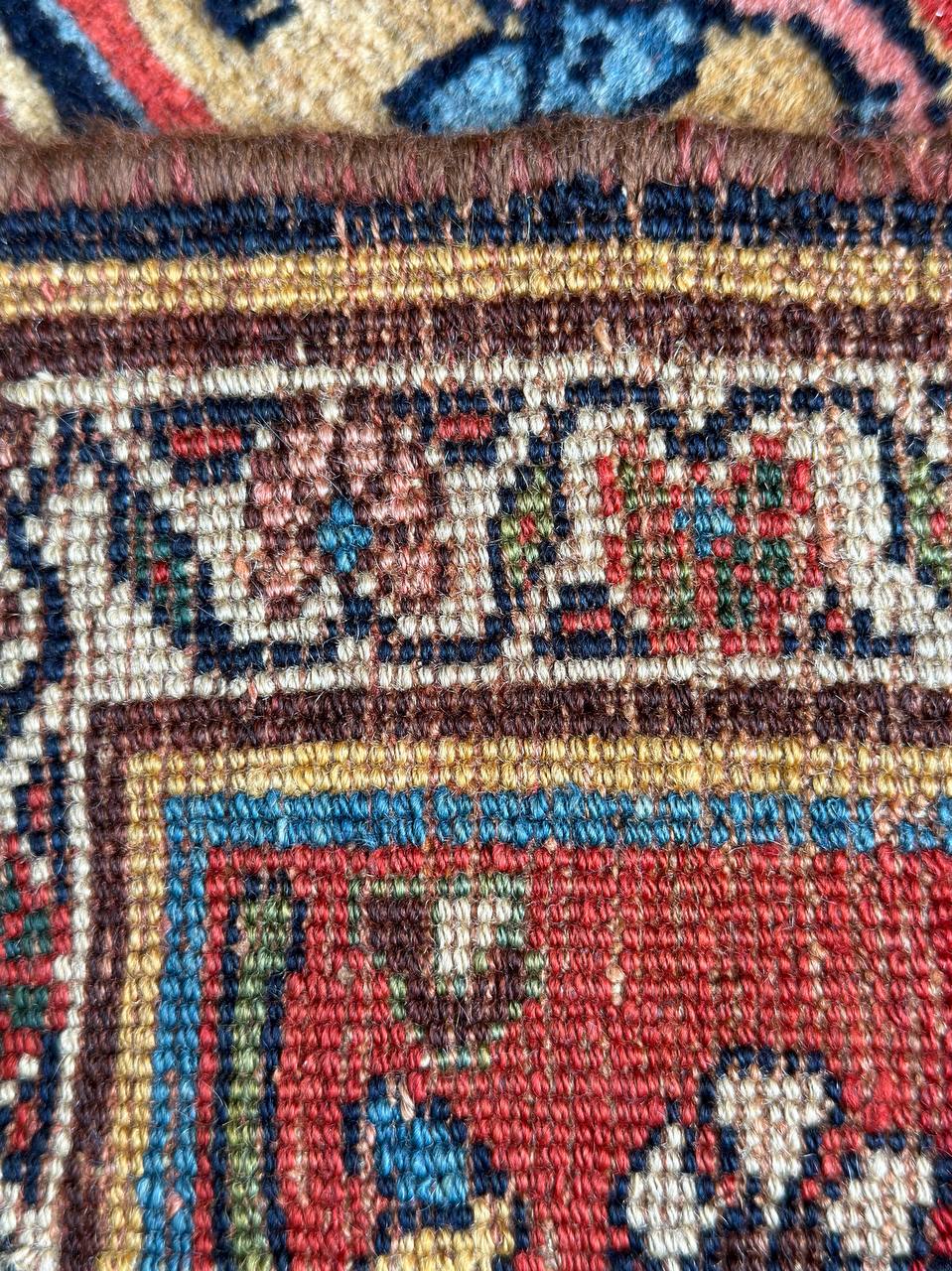 Gorgeous Spiritually Grounding Antique Persian Bidjar Rug, Country of origin: Persian Rugs, Circa date: 1900 – “This antique rug likely dates back several decades, showcasing the intricate artistry of traditional rug-making. Additionally, its design reflects a rich history, possibly linked to Persian or Anatolian influences. Moreover, the craftsmanship suggests it may be hand-knotted, a technique valued for its durability. However, without precise documentation, the exact origin remains speculative.