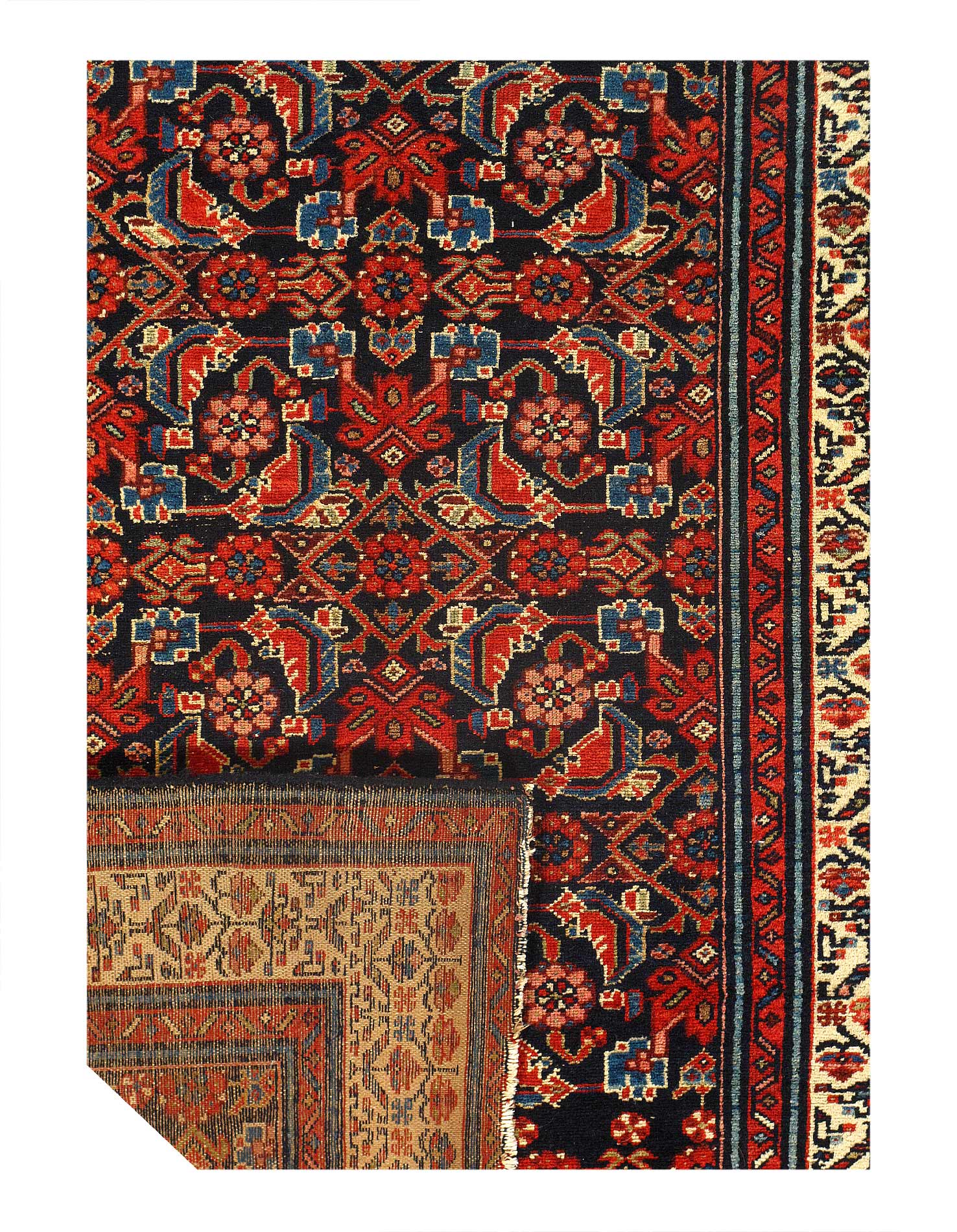 Fine Hand knotted in a village around Hamadan, western Iran. Hamadan rugs can originate from any one of hundreds of villages across the vast region. While materials used can vary from one village to another, one uniting characteristic of this area is that virtually all Hamadan rugs are single-wefted, unlike most tribal rugs which are double-wefted. This particular Persian antique rug is in excellent condition and has superb quality wool that must be felt to be fully realized. As far as Hamadans go, this piece is outstanding.