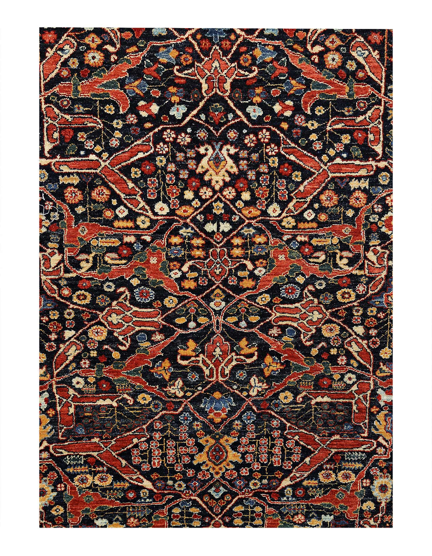 Bidjar is a town in Persian Kurdistan located in north-west Persia. The Bidjar name is also used to describe the antique rugs that were produced in the many villages in the surrounding vicinity. The Bidjar is noted as being the stiffest carpet made; they are very heavy in relation to their size, and very thick and durable. All of the knots are symmetrical and the rows are beaten down during the weaving process producing a dense compact fabric. Given their thickness and construction Bidjar rugs can be difficult to fold. The many designs depict the Kurdish influence of the area and often floral and classical geometric motifs are employed as well as the use of large, whimsical medallion designs. The color palate is rich and jewel toned making the Bidjar a highly desirable rug sought after by designers.