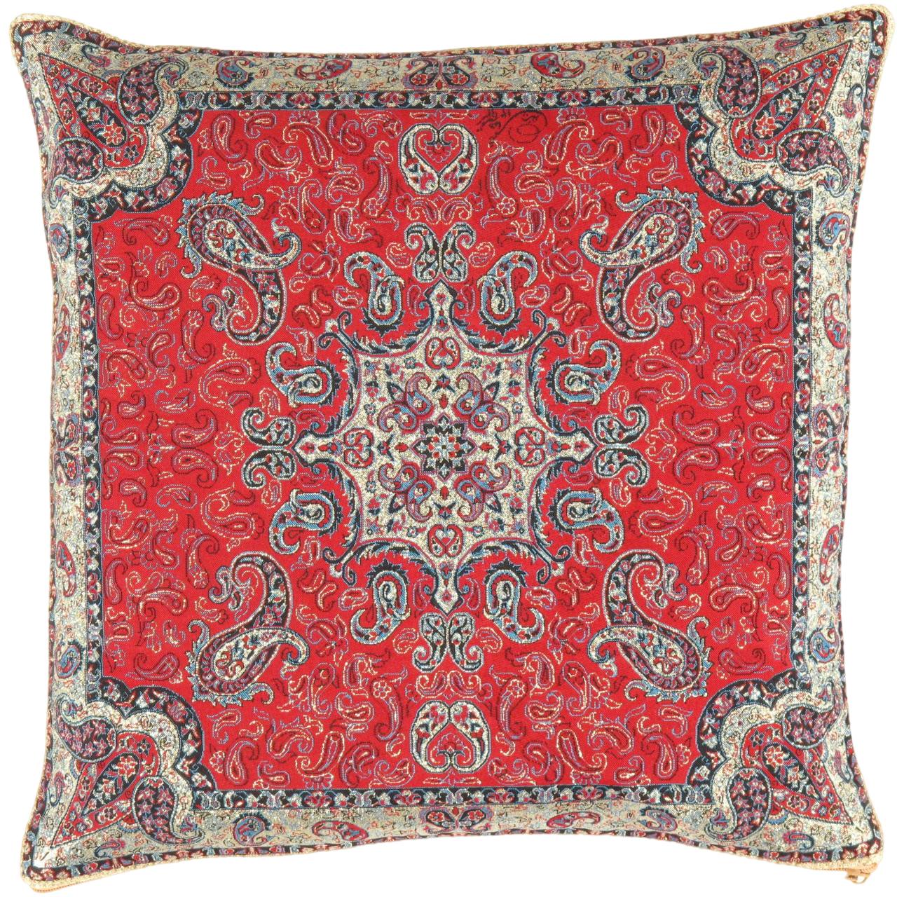 Beautiful Silk Teremeh With Ancient Design Representing Fine Art Of Tapestry With 2000 Years of History .Red,Beige Thread A Decorative Item to be used on Tables or Furniture or Gift Design: Color: red / Beige / Cream/gold, Size: 16'' X 16''