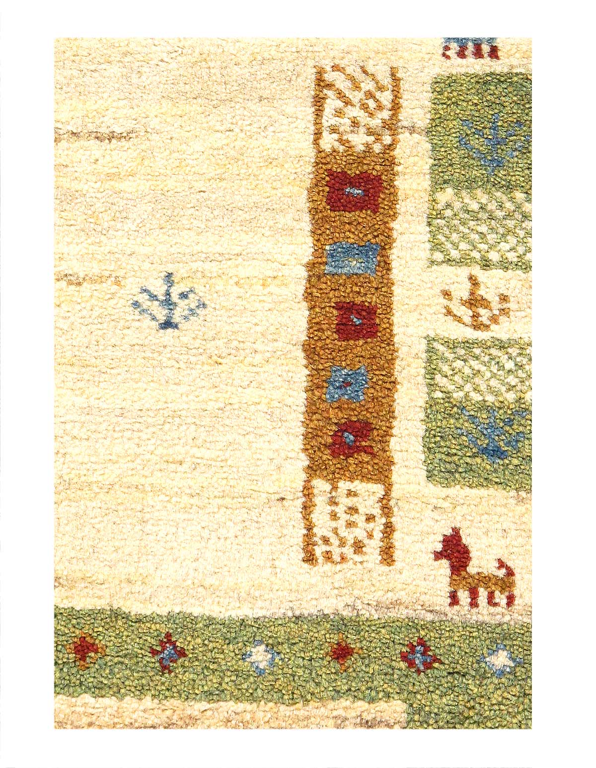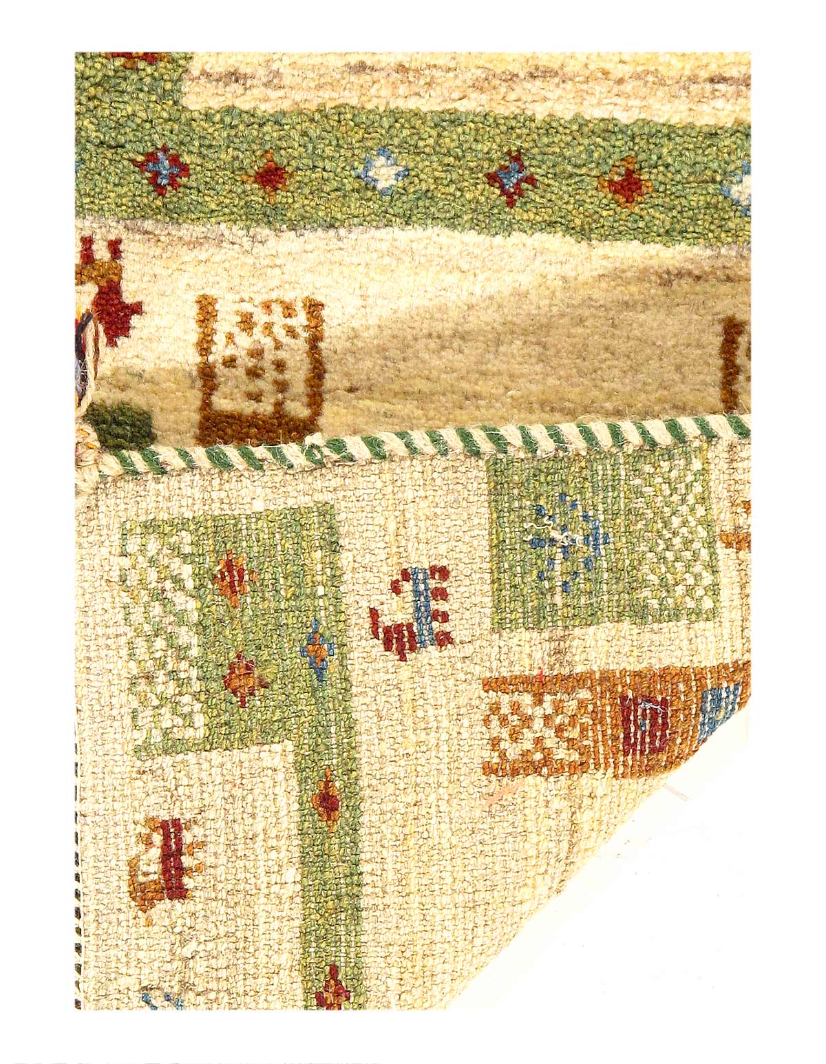 This Gabbeh Scatter Rug is made of high-quality old and rare Persian Gabbeh carpets. The piece was crafted with good workmanship.