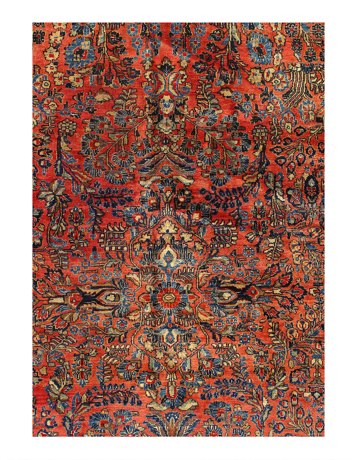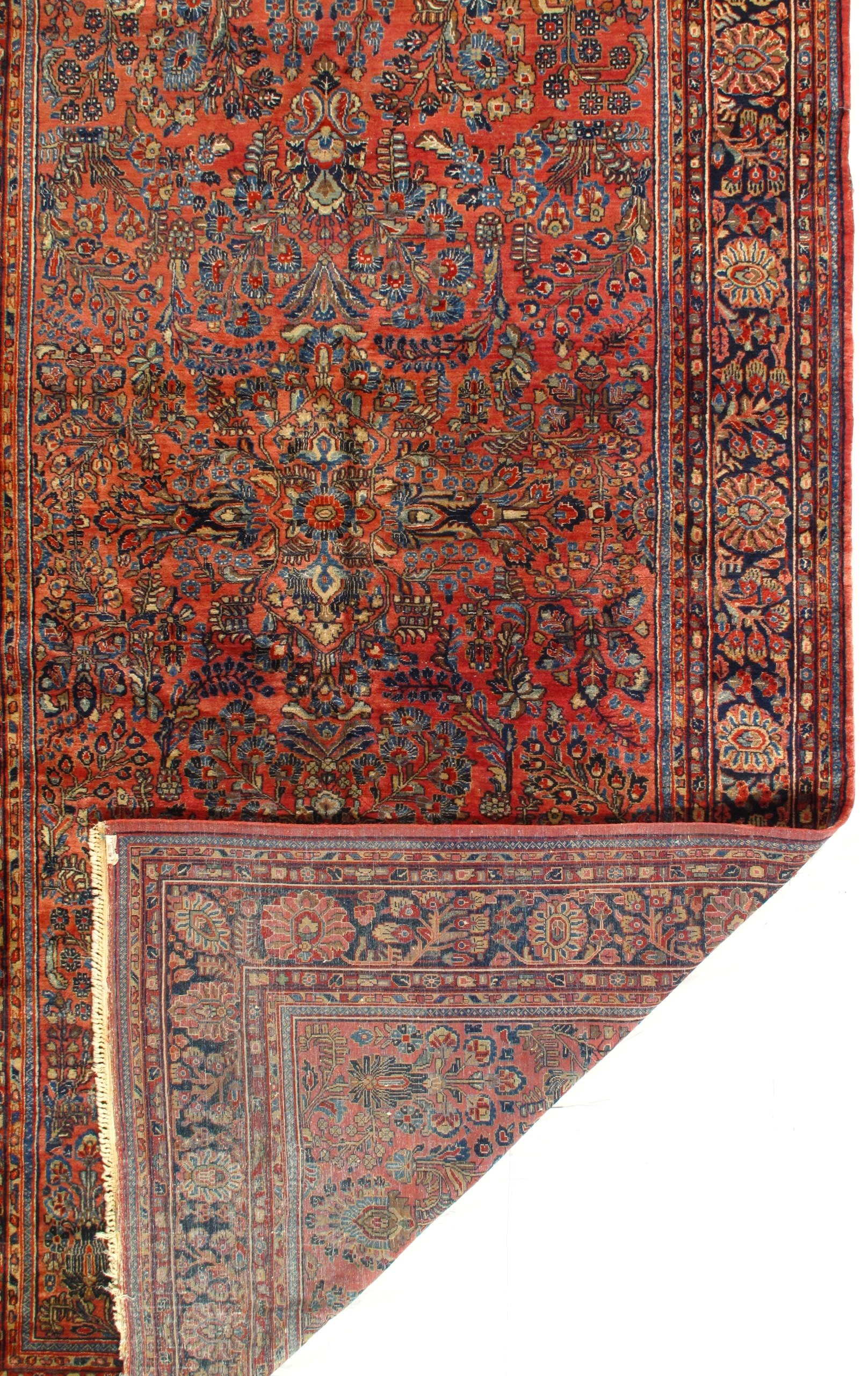 Antique Persian Sarouk rug. These vintage rugs bring traditional sophistication to your home. These rugs feature 100% premium lamb's wool pile hand-knotted into elegant designs, perfect for your elegant decor. Circa 1920.