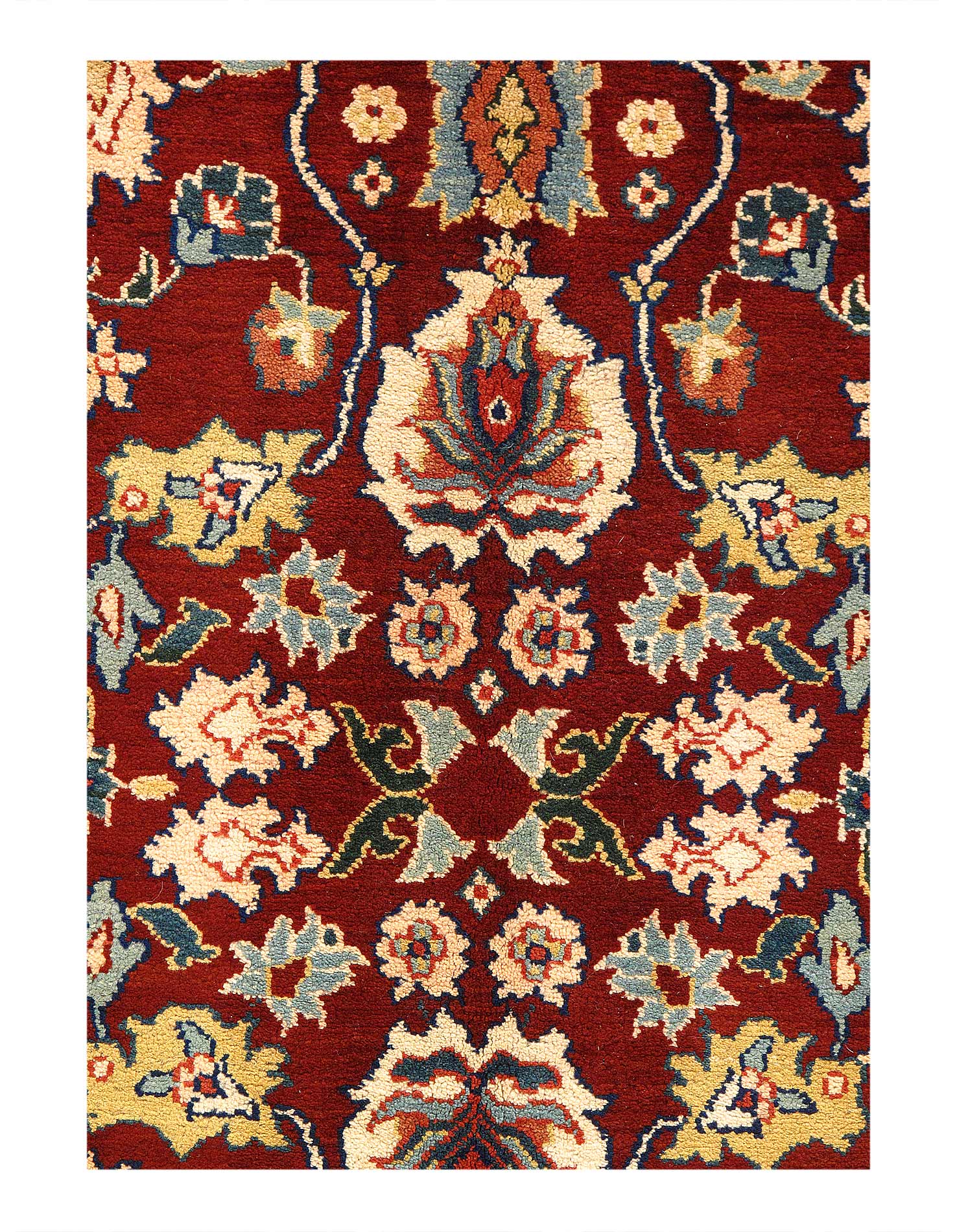 Augra rugs are distinguished by their excellent weave, they have the most diverse display of designs which often reflect scenes of falconry, and ferocious lions. Some of the most well know Augra rugs were inspired by hand painted covers of Ancient books. The dominant colors for these rugs tend to be, cream, red, navy blue, and many more. Their material is often woven with wool or silk. Augra rugs are not only one of the finest groups of Indian rugs but also the most decorative as well.