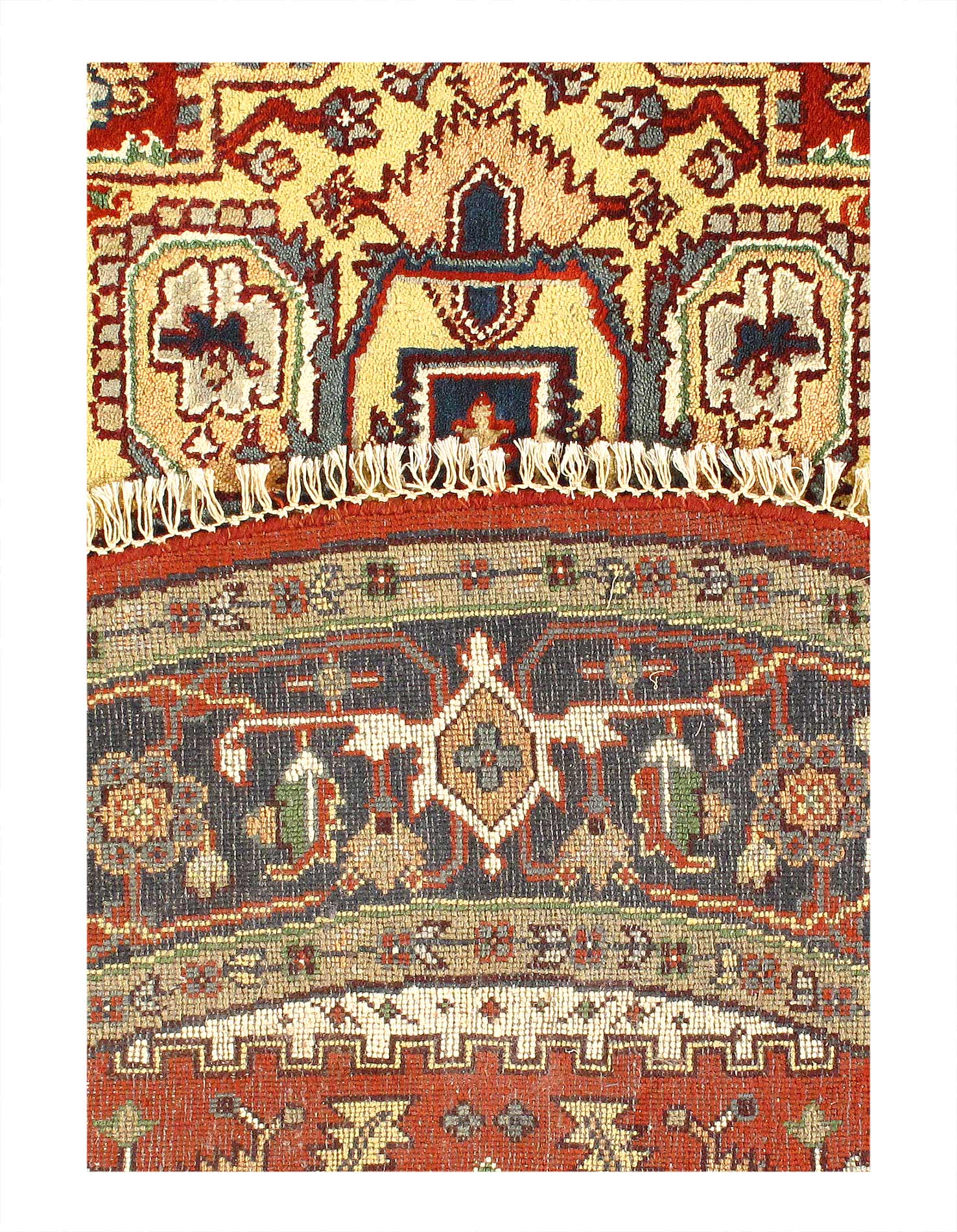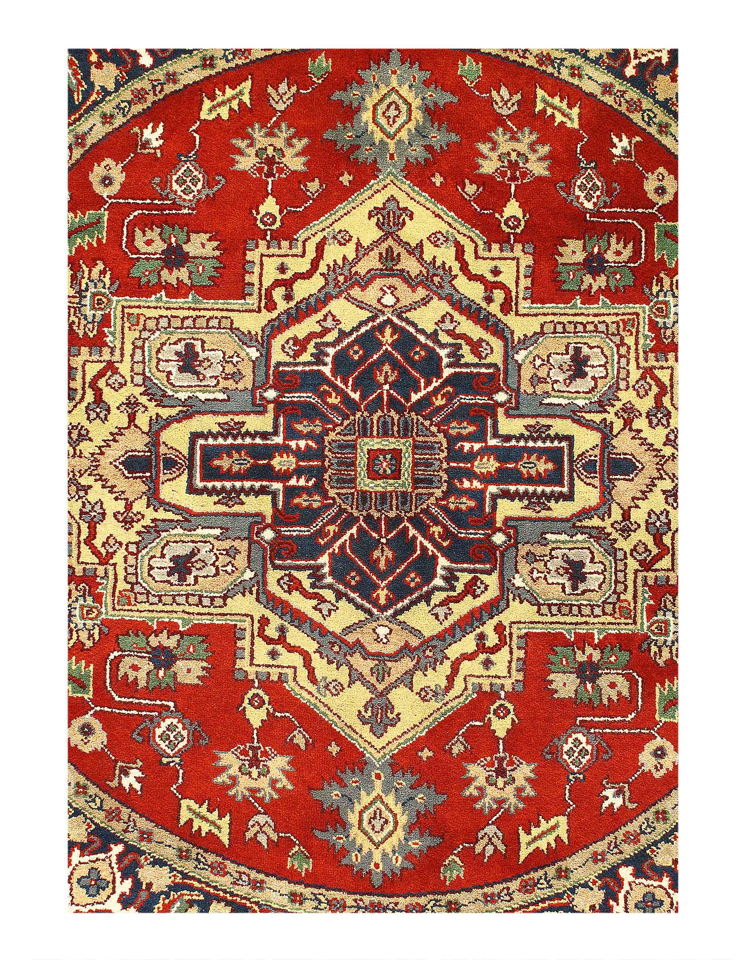 Indo Serapi design rug. Handmade Hand-knotted in fine lambswool. Lamb's Wool on a Cotton Foundation Vegetable Dyed Hand-Spun Wool Rug The Serapi Rug is one of the most sought after rugs particularly in the USA and England for many years. No other rug so epitomizes the "East Coast Establishment" than the Serapi carpet This rug has a dense, soft pile, and excellent quality, to ensure that you will enjoy the look and feel of your rug for years to come